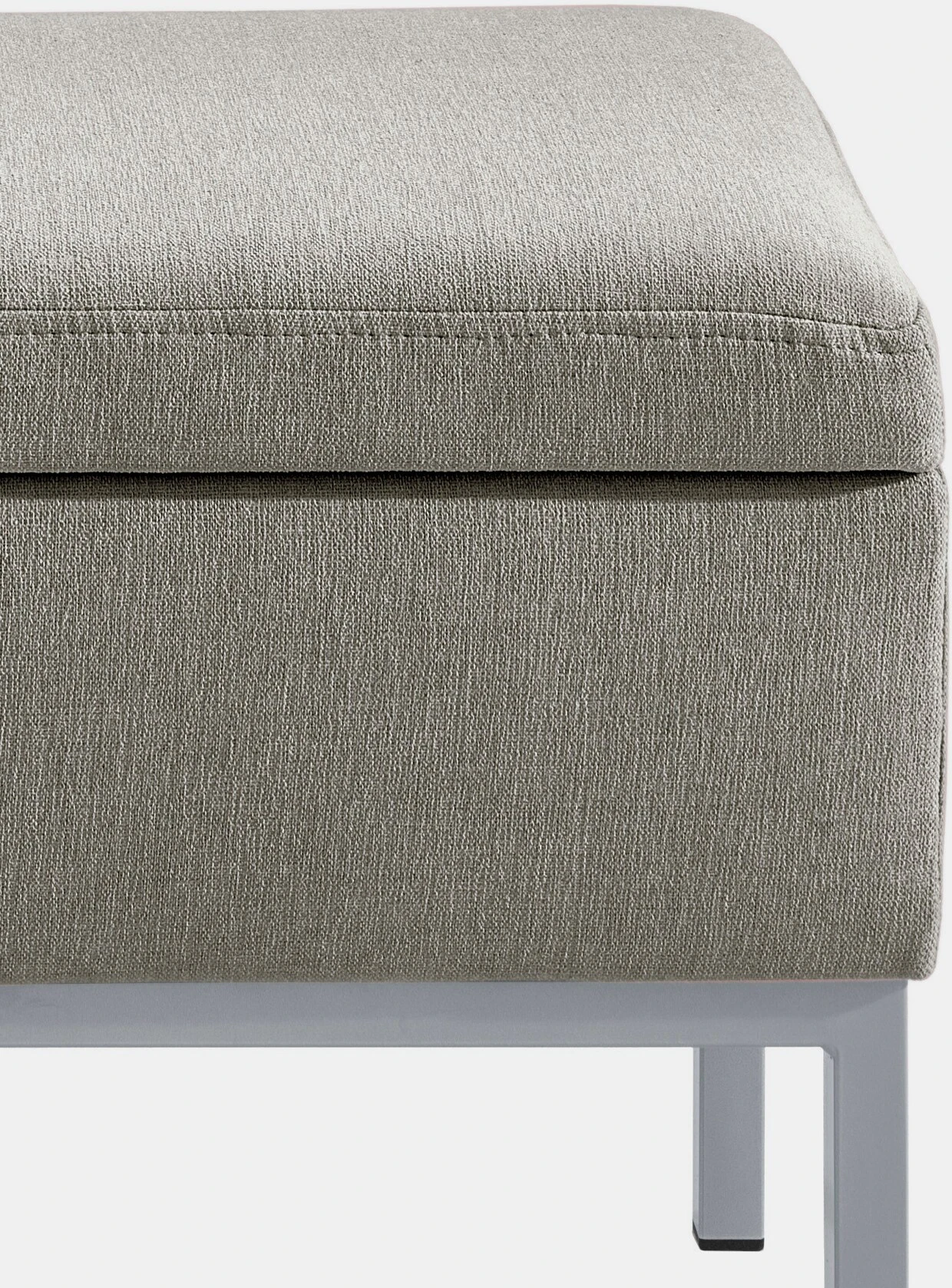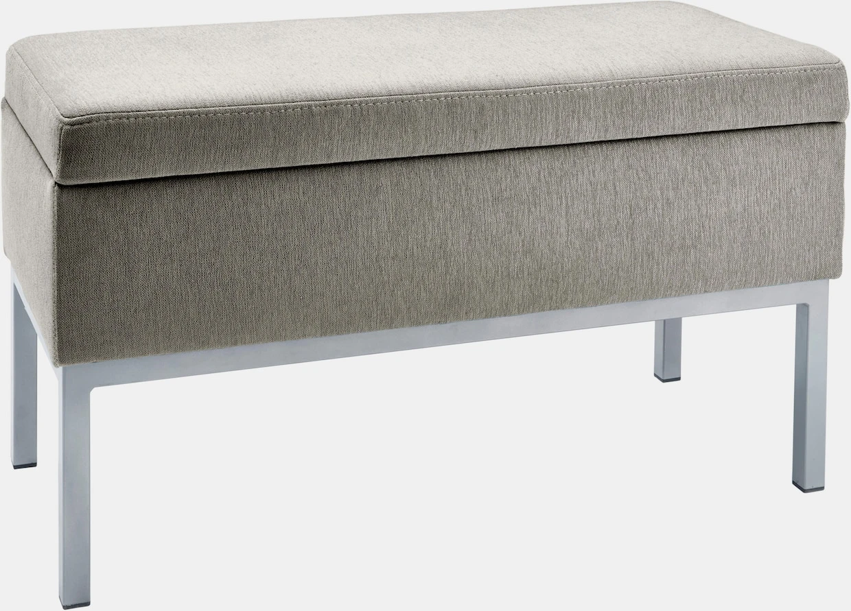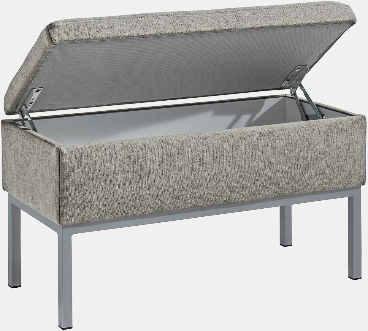 Bank Aufklappbar mit Staufach. Metallgestell mit festem Schaumstoffkern. Strapazierfähiger Stoffbezug. Frei in den Raum stellbar.