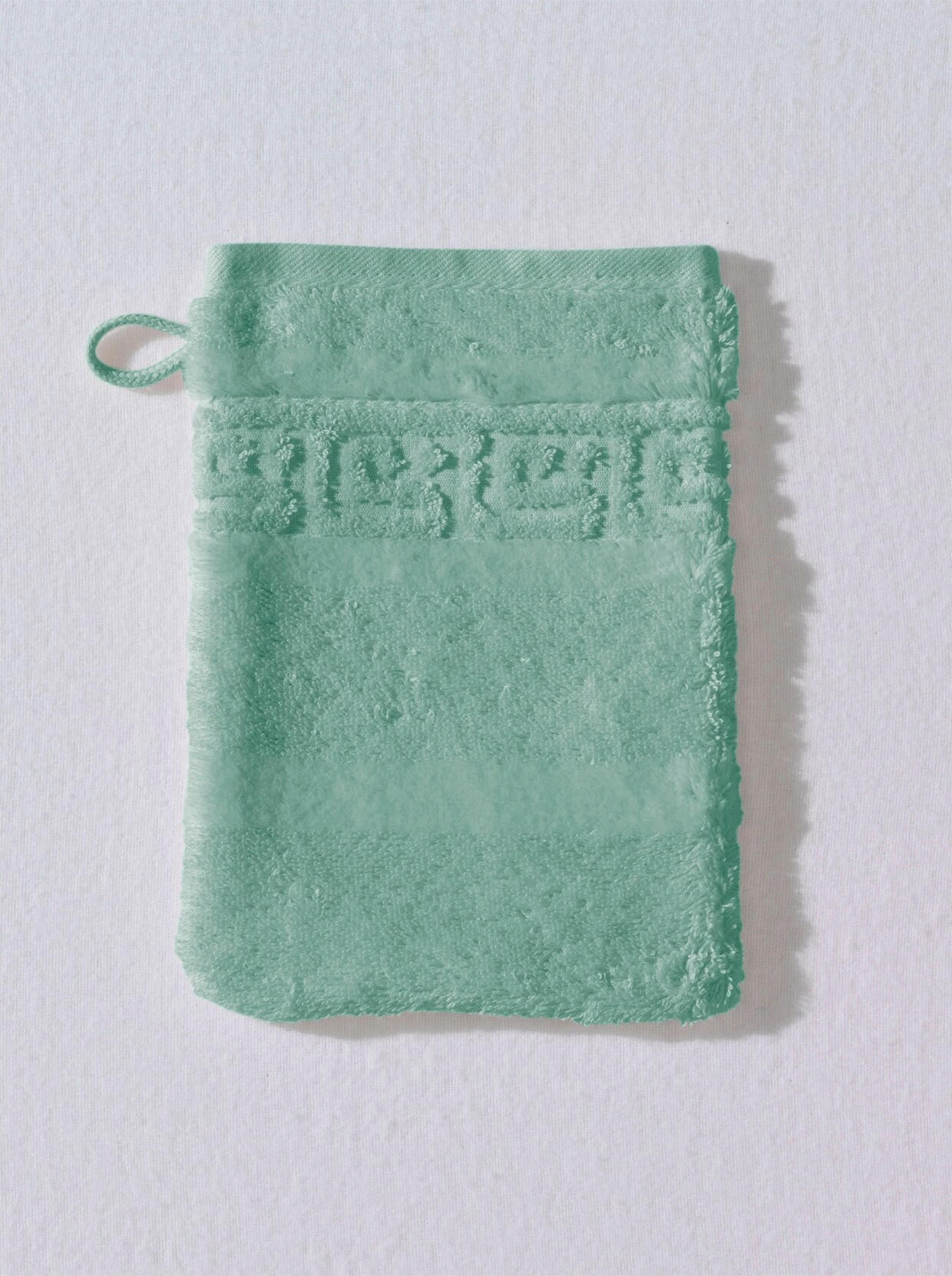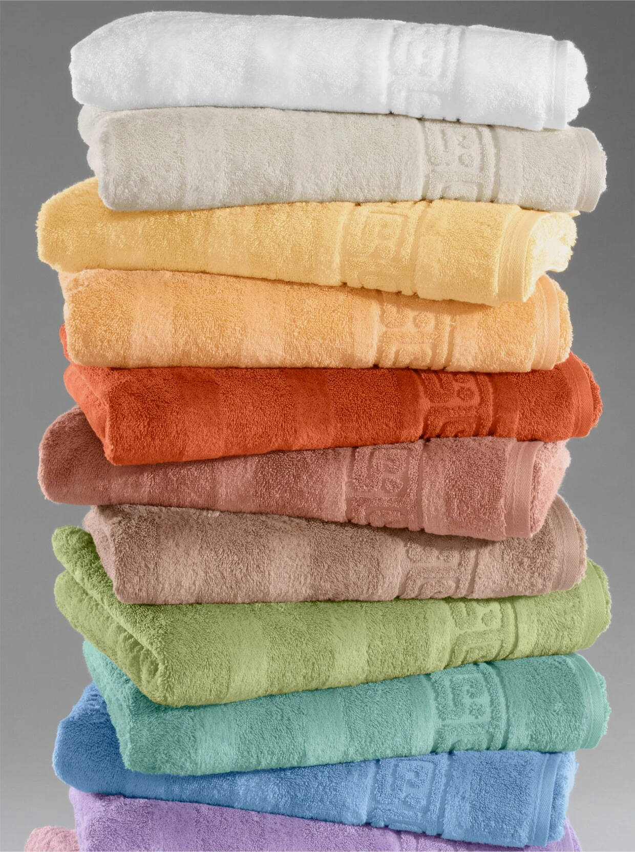 Handtuch mit eleganter Mäanderborte und dezenten Veloursstreifen. Besonders langlebige und saugstarke Walkfrottier-Qualität.