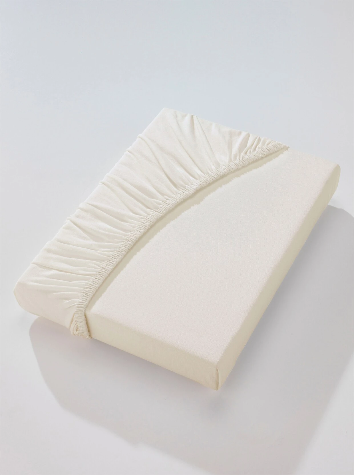 Spannbetttuch. Bügelfreier, hautsympathischer Mako-Feinjersey: Diese elastische Wirkware ist glatt und weich und überzeugt durch ihr feines, ebenmäßiges Maschenbild. Rundum-Gummizug. Langstapelige Mako-Qualität. Geeignet für eine Matratzenhöhe von bis zu 25 cm.