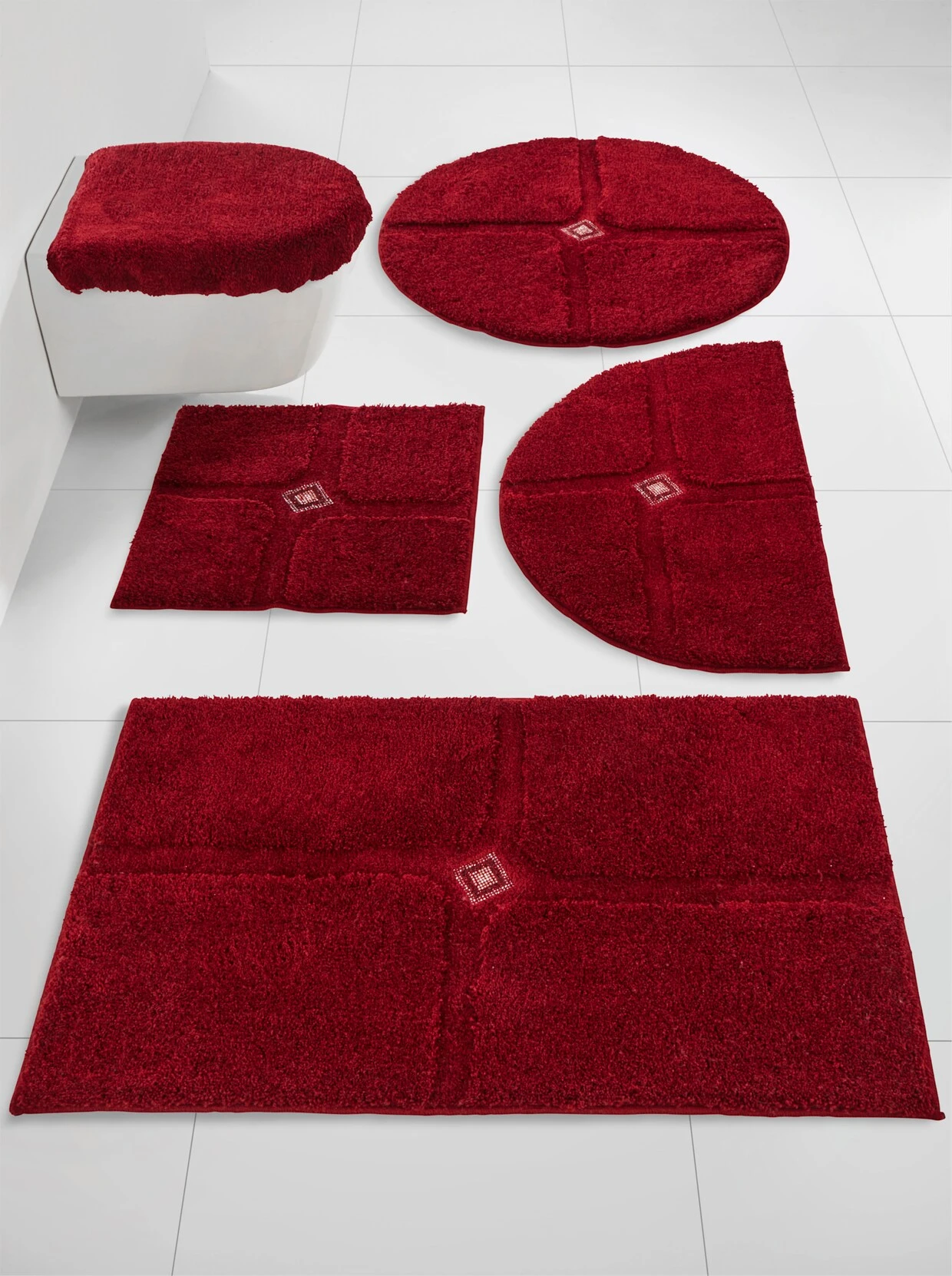 Badematte Made in Europe. Mit Hoch-/Tiefeffekt und dekorativen Ziersteinchen. Florhöhe ca. 20 mm. Gekettelt. Rückseite rutschhemmend beschichtet. Äußerst strapazierfähig. Für Fußbodenheizung geeignet.