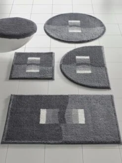 Badgarnitur Weicher Flor. Rückseite rutschhemmend beschichtet. Für Fußbodenheizung geeignet.