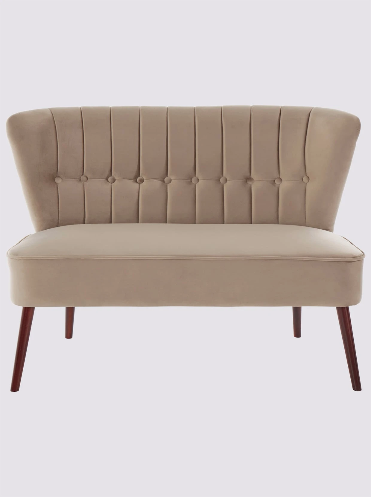 Bank Gestell teils aus massivem Kiefernholz aus China, teils aus MDF-Holzfaserplatte. Bezug in Samtoptik aus 100% Polyester. Mit dekorativer Ziersteppung und Knopfheftung. Füße aus Gummibaum aus China, kirschbaumfarben lackiert. Sitz-H/B/T ca. 45/106/48,5 cm. Teilmontage.