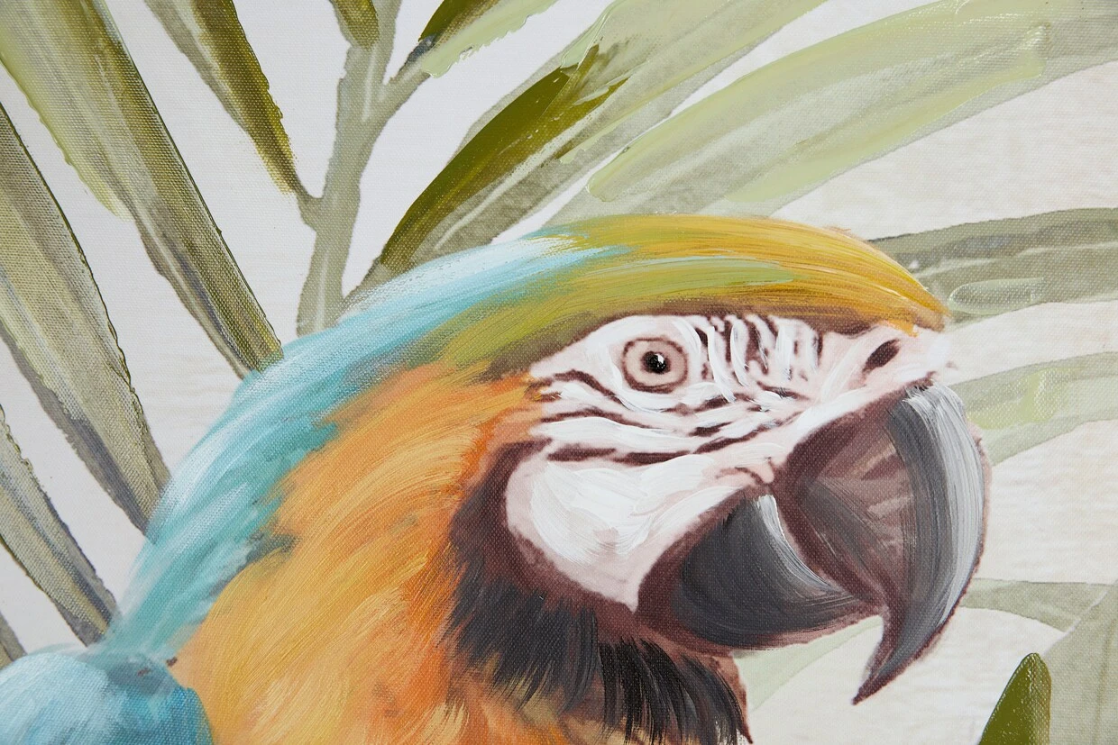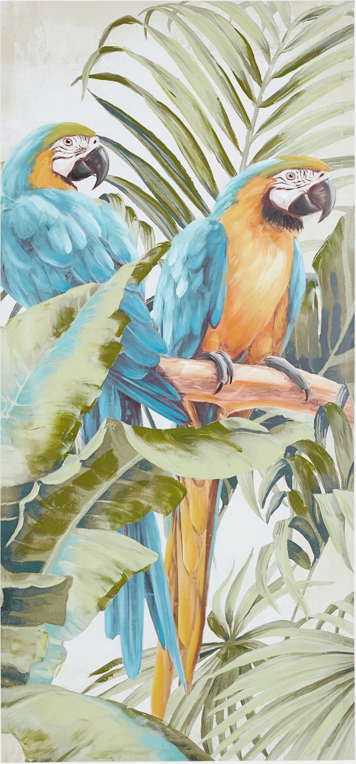 Bild Mit Papageien-Motiv. Ein Hingucker für Ihre Wand. Jedes Teil fällt individuell aus. Abweichungen möglich. Mit Acrylfarbe gemalt. Leinwand auf Holzrahmen gezogen.