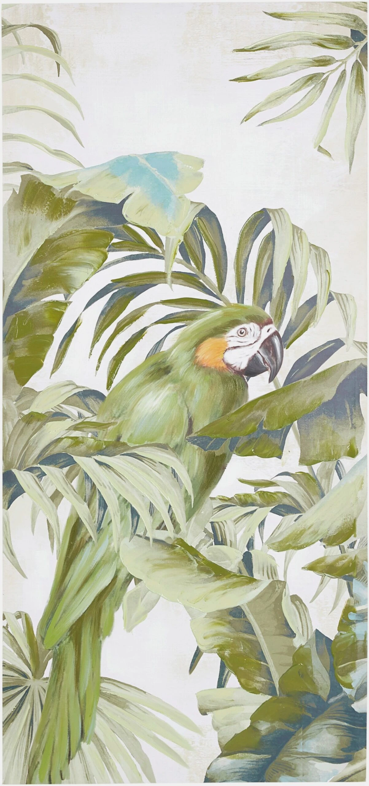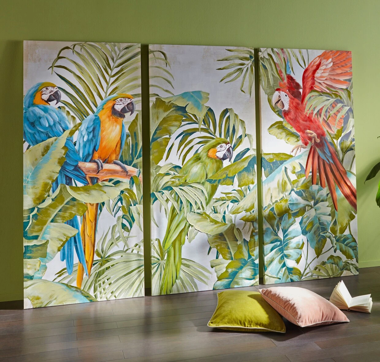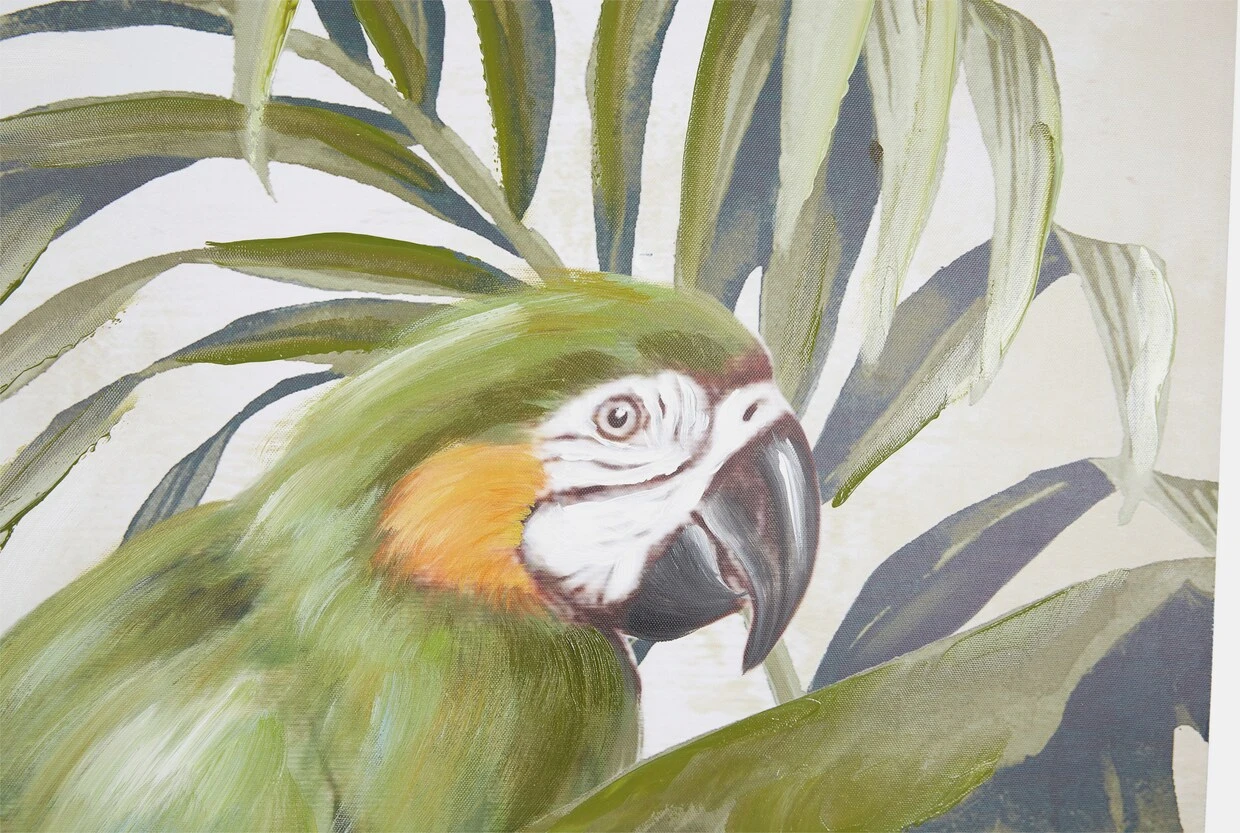 Bild Blickfang mit Papageien-Motiv. Abweichungen möglich. Mit Acrylfarbe gemalt. Leinwand auf Holzrahmen gezogen.