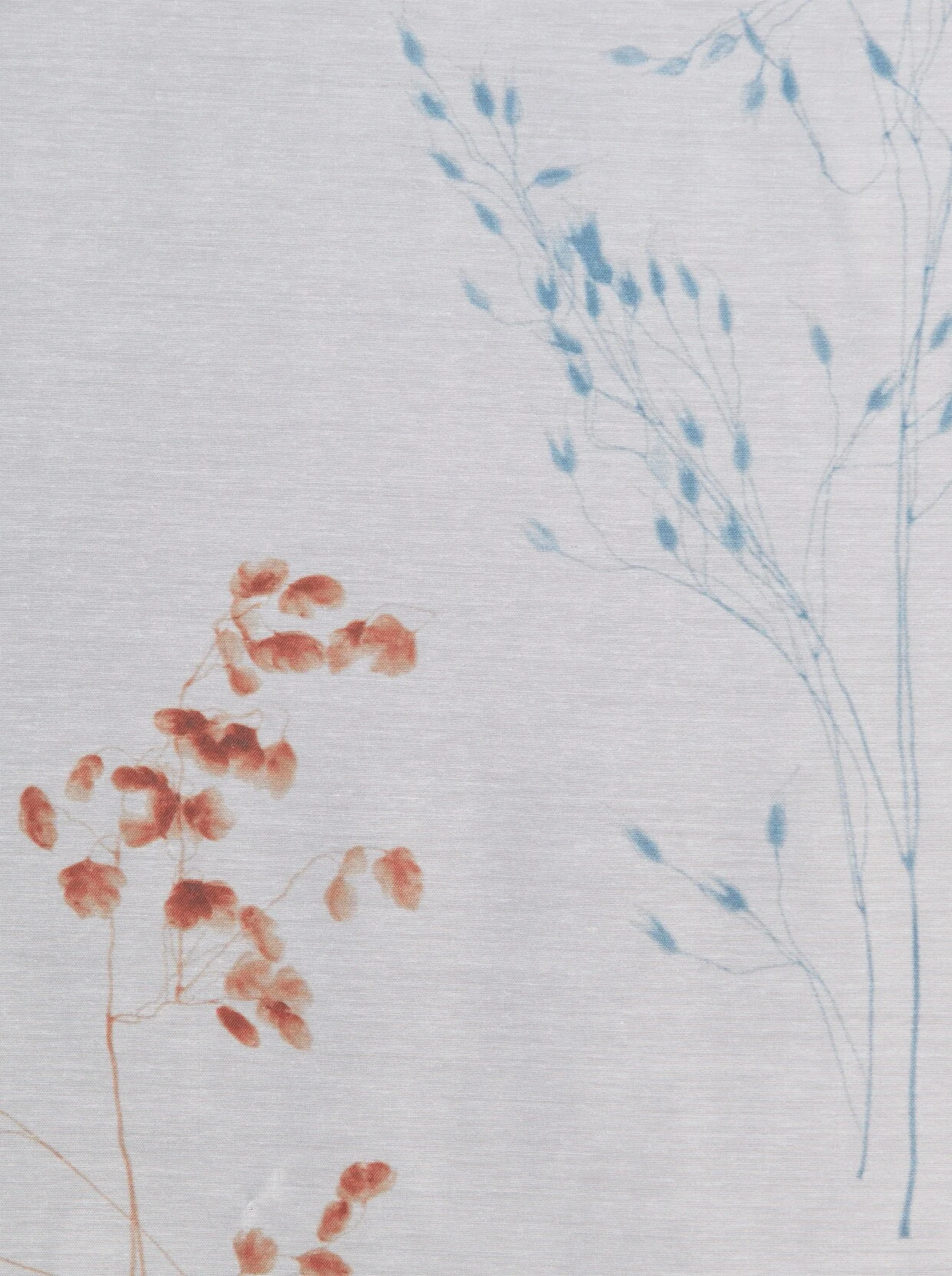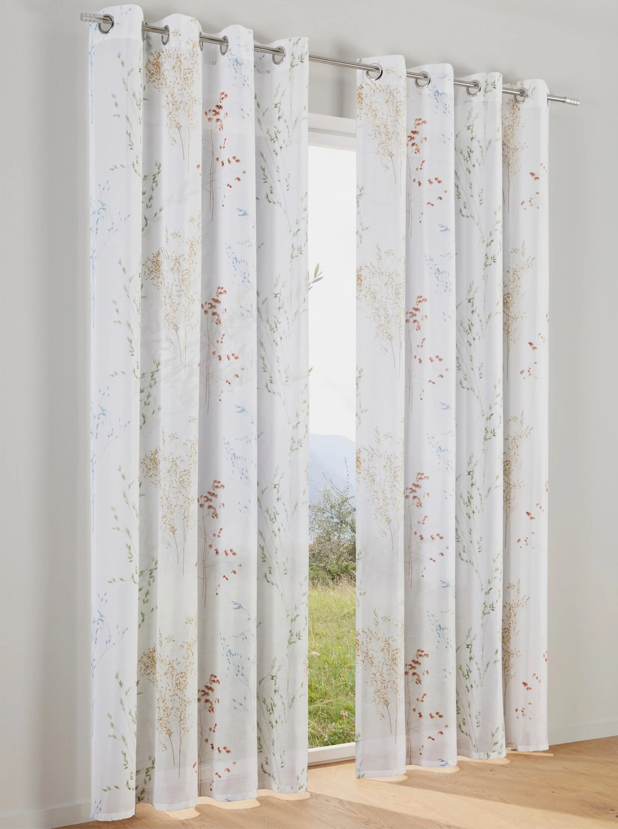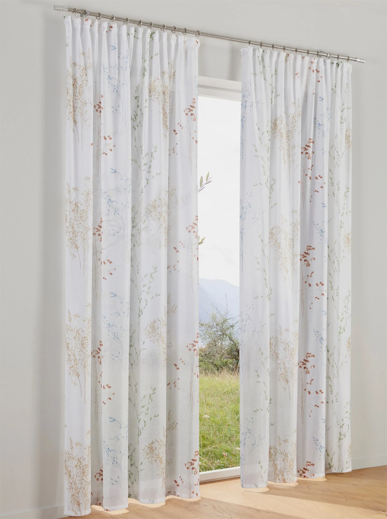 Dekostore Bedruckt. Gewebte Ware. Weich fließende Qualität. Halbtransparent.