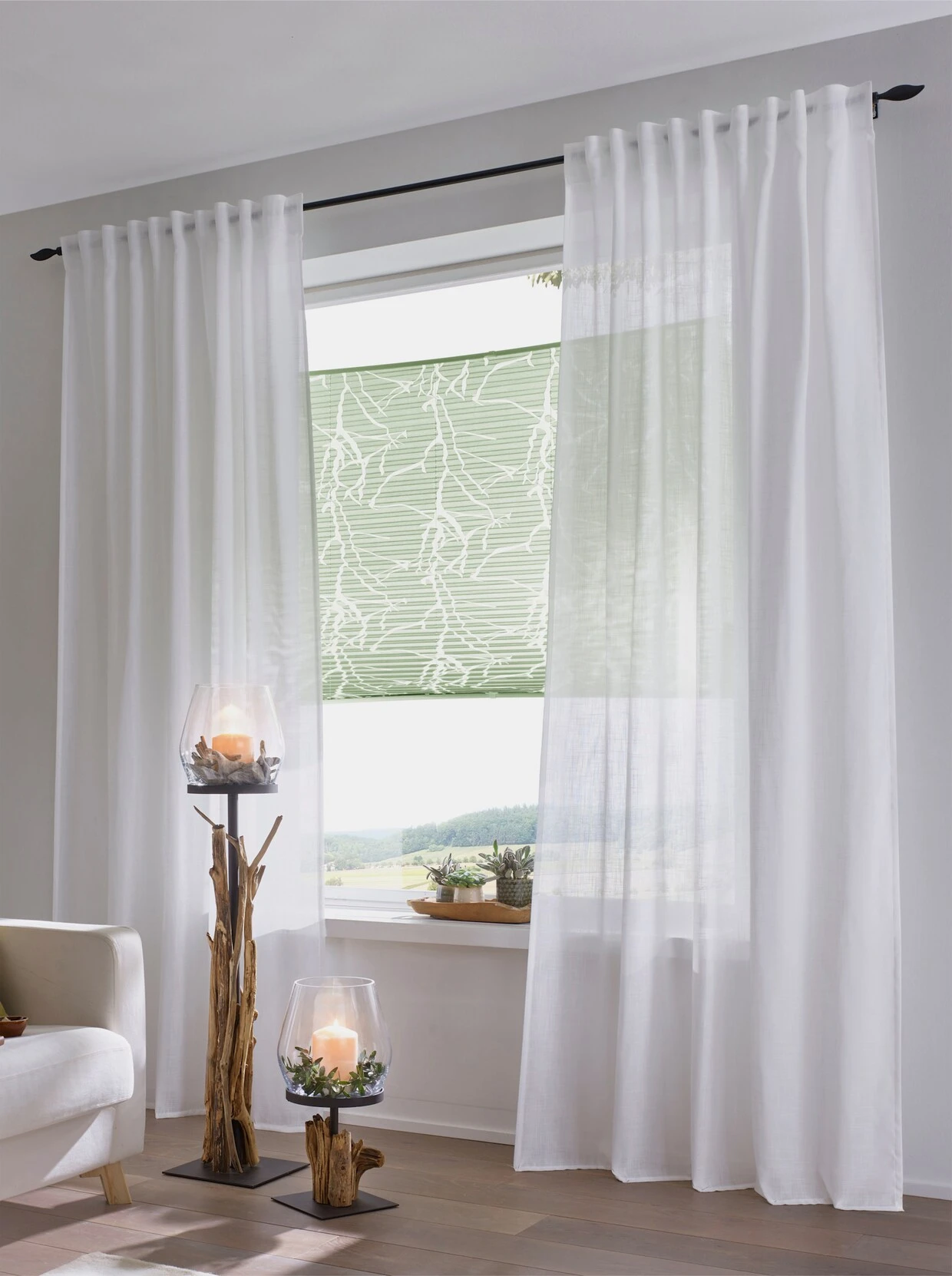 Dekostore Gewebte Ware. Weich fließende Qualität. Halbtransparent. Mit Multifunktionsband.