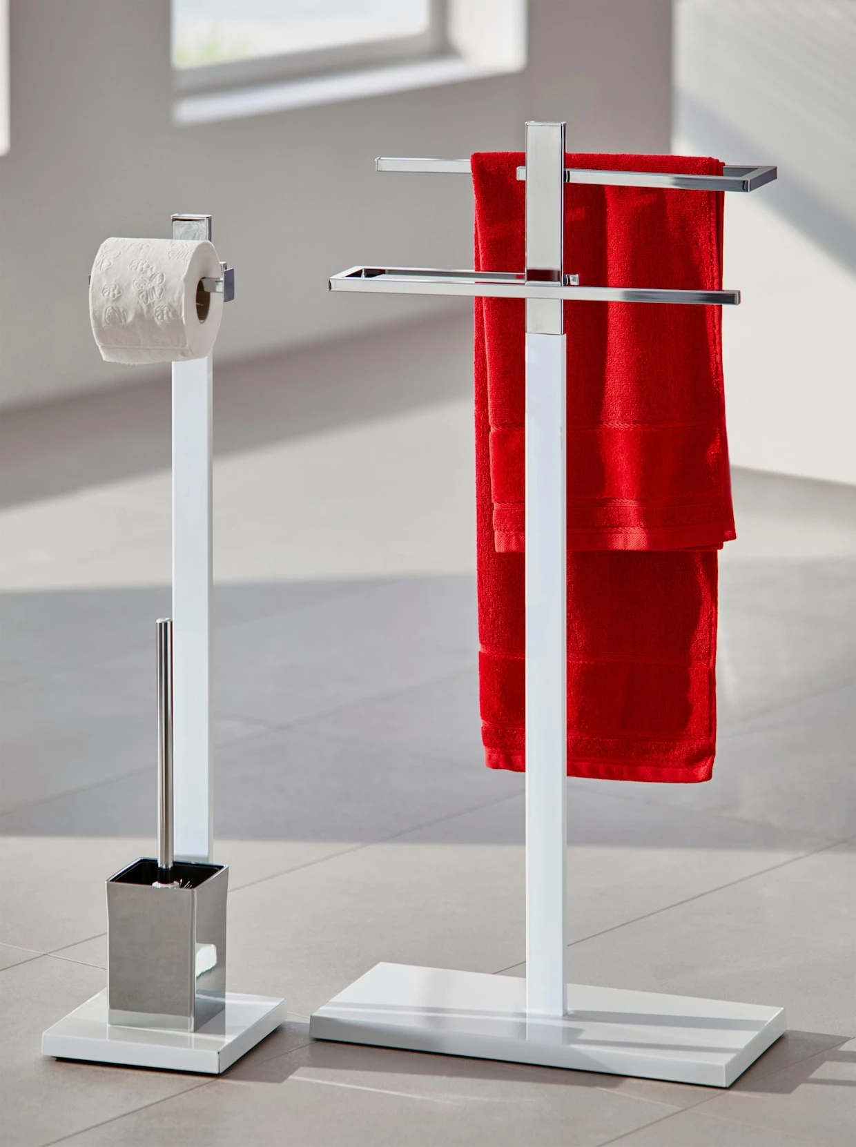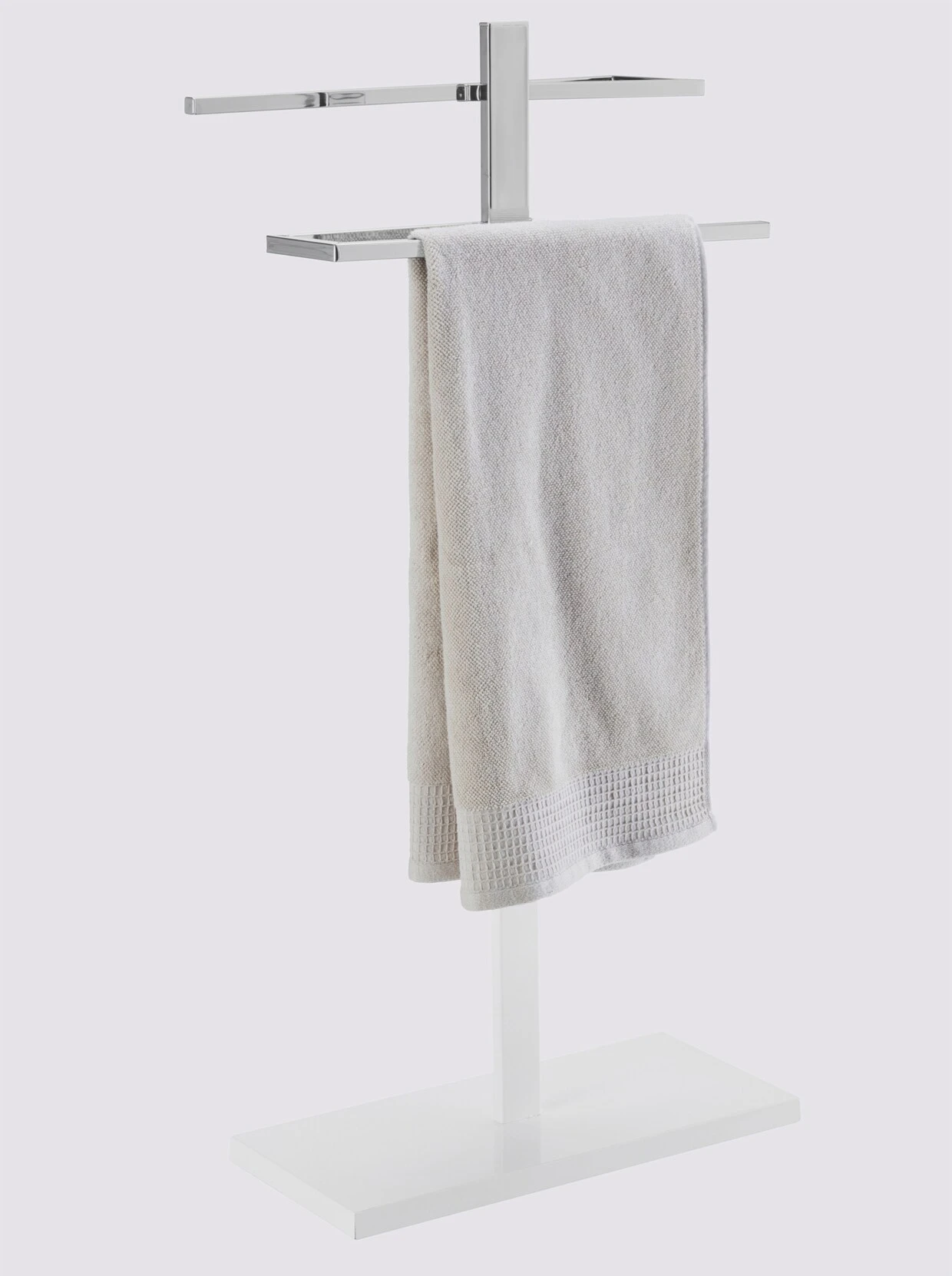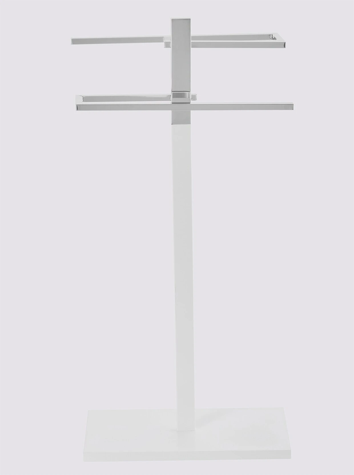 Handtuchständer Aus verchromtem Metall, weiß pulverbeschichtet. 2 Handtuchstangen. Stabiler Standfuß. Selbstmontage.