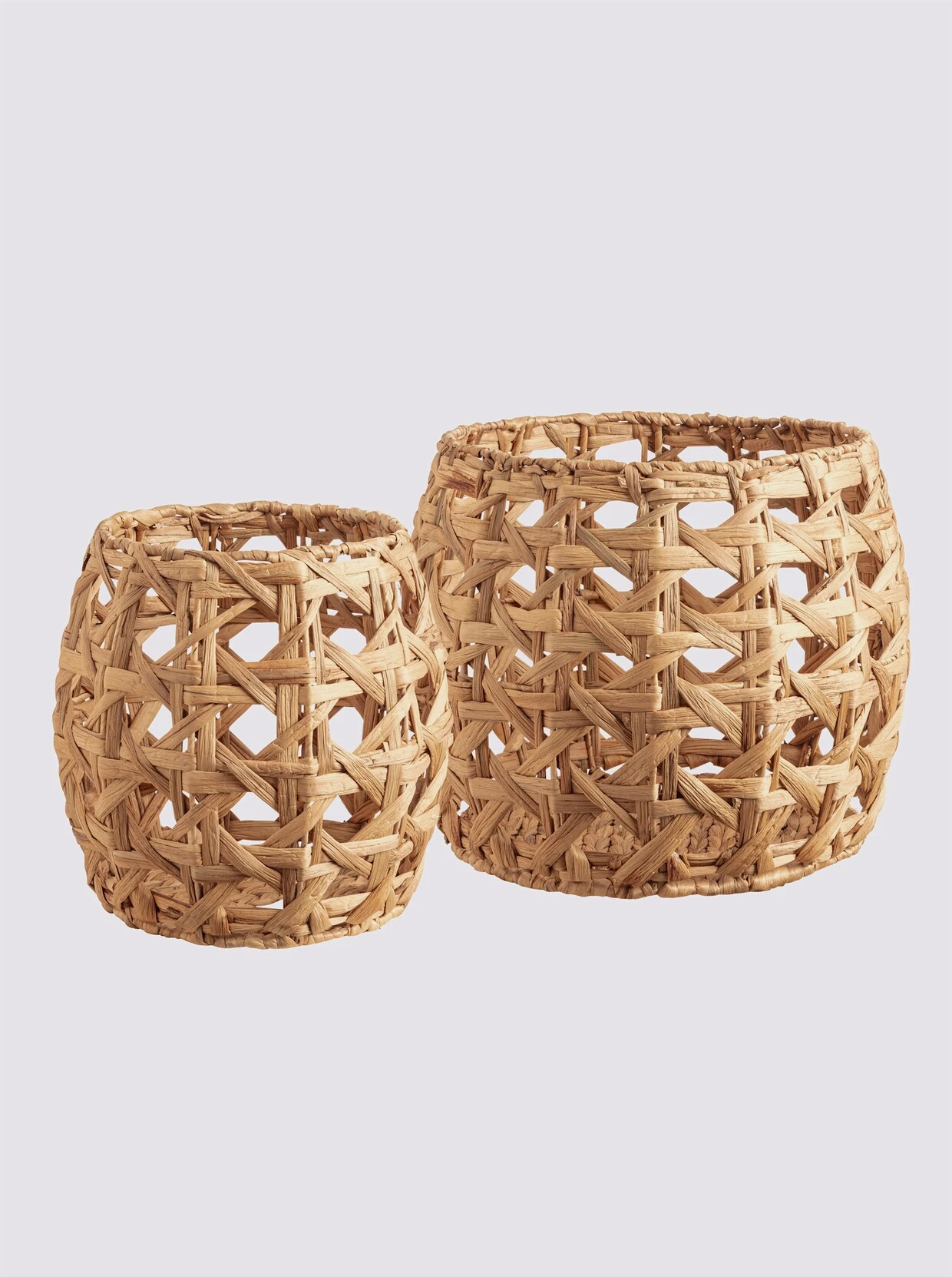 Körbe 2er-Set Aus Wasserhyazinthe naturbelassen. Handgefertigt. Abweichungen sind möglich. Platzsparend ineinander stellbar.