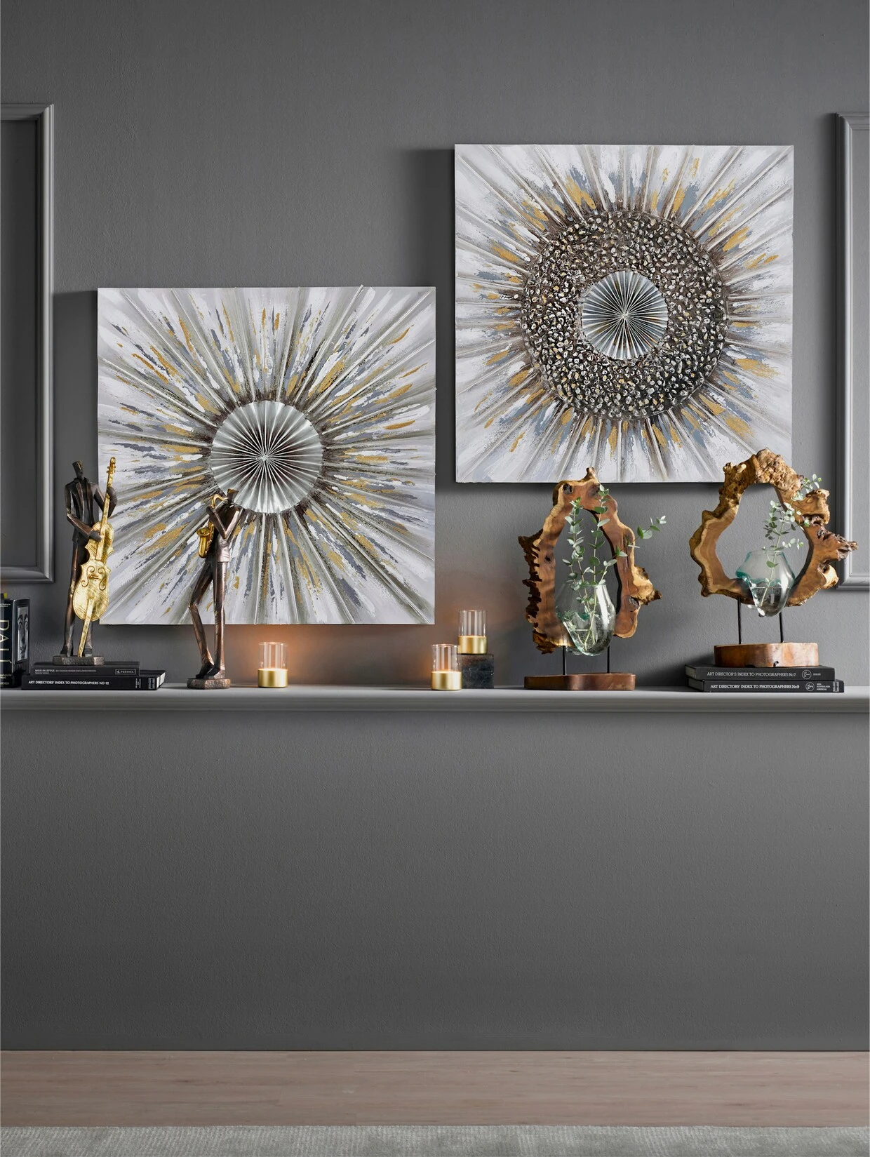 Originalgemälde Handgearbeitet. Jedes Teil fällt anders aus. Abweichungen möglich. 3-D-Effekt durch Holzstäbe-Deko. Teilweise mit Steinchen dekoriert. Acrylfarbe auf Leinwand, auf Holzrahmen gezogen.
