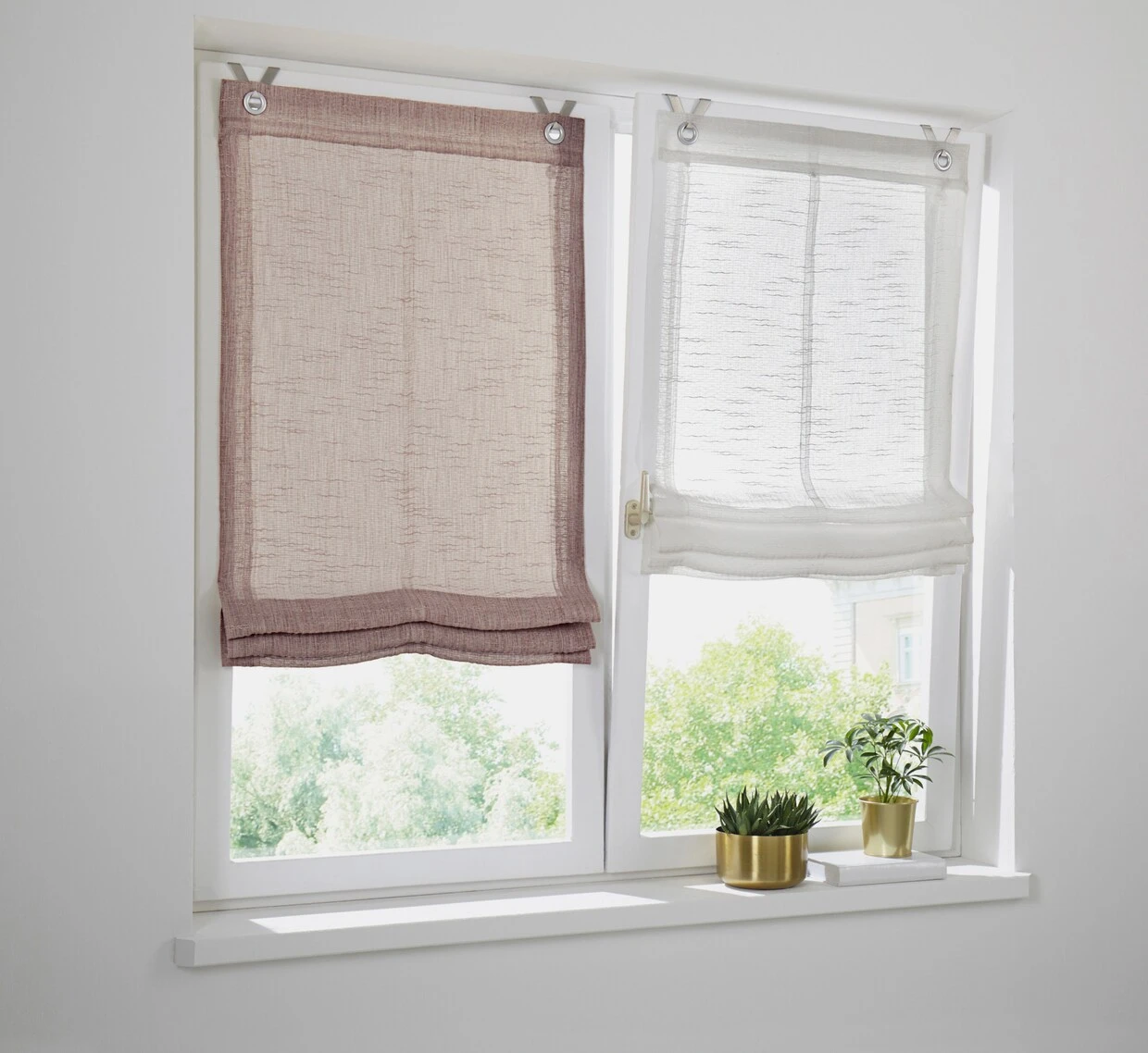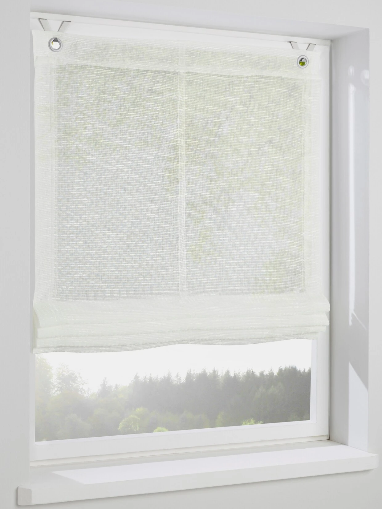 Raffrollo Halbtransparent. Einfache Montage mit Haken und Ösen. Inklusive Montagematerial. Maßinfos im Internet.