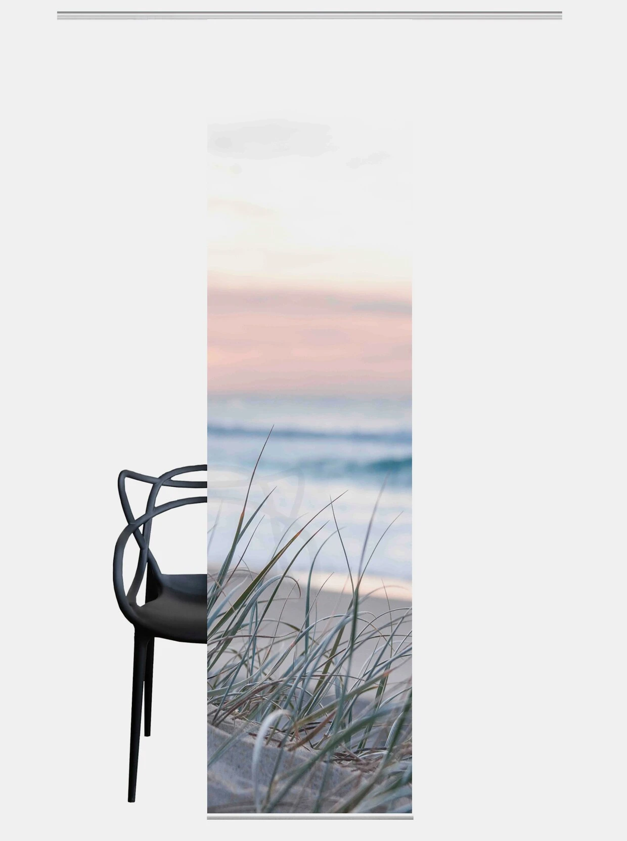 Schiebevorhang Blickdicht, in edler Seiden-Optik mit leichten Effekten. Mit schönem Strand-Motiv im digitalen Fotodruck. Die hochwertige Aluminium-Klemmleiste ermöglicht ein individuelles und unproblematisches Kürzen. Inklusive Paneelwagen mit Röllchen und x-Gleitern für alle gängigen Gardinenschienen.