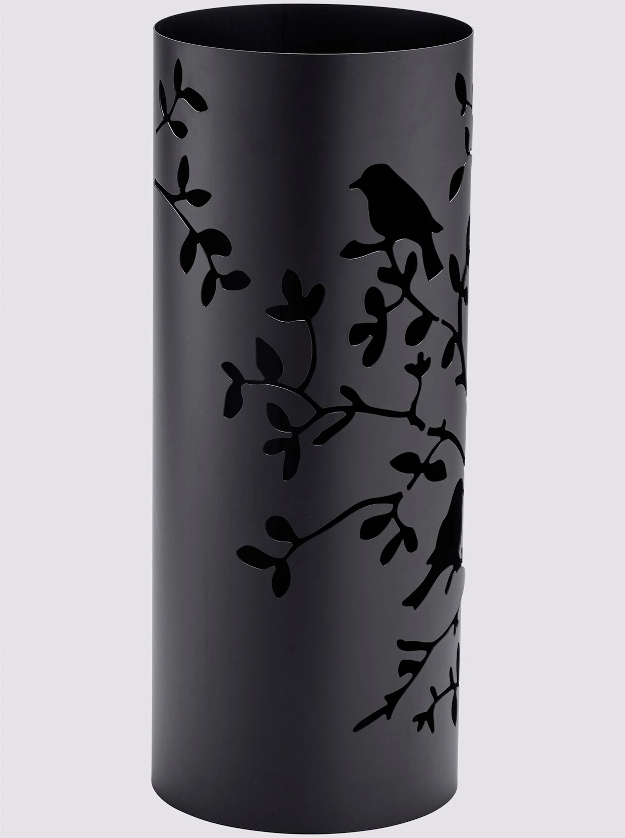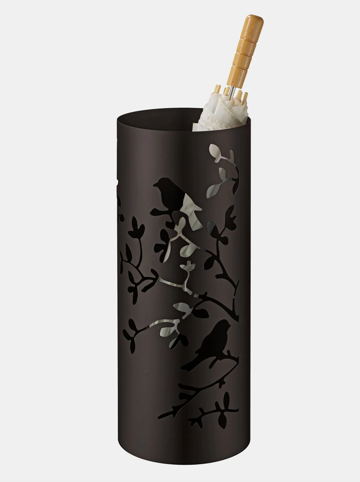 Schirmständer Schönes Design, mit Vogelmotiv. Aus Metall, pulverbeschichtet. Mit herausnehmbarer Auffangschale.