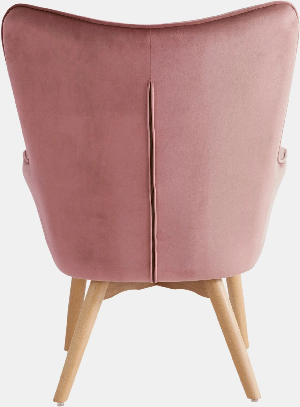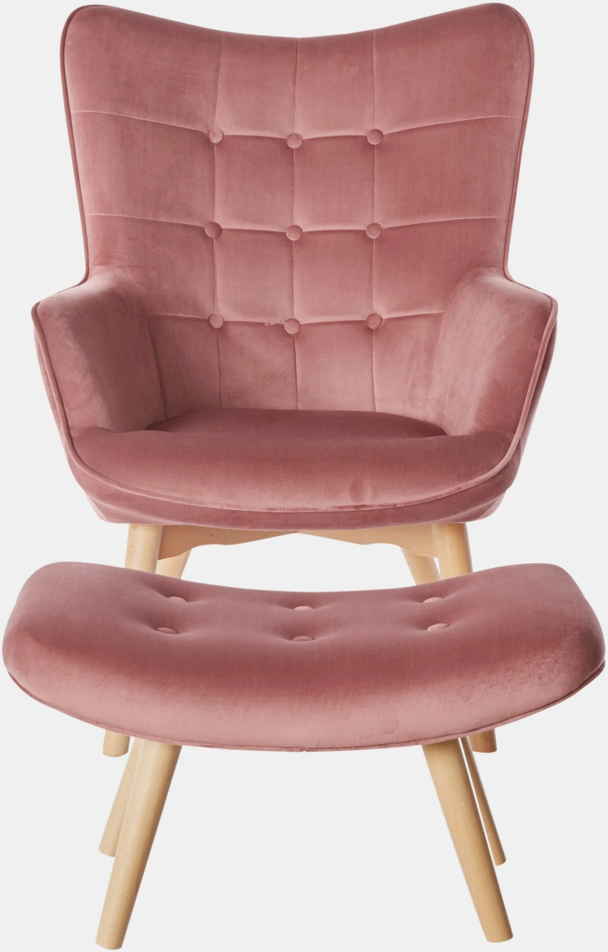 Sessel+Hocker Bezug in Samt-Optik. Grundgestell und Füße aus Buchenholz. Mit Kederheftung und festem Schaumstoffkern. Sitz-H ca. 45 cm. Teilmontage.
