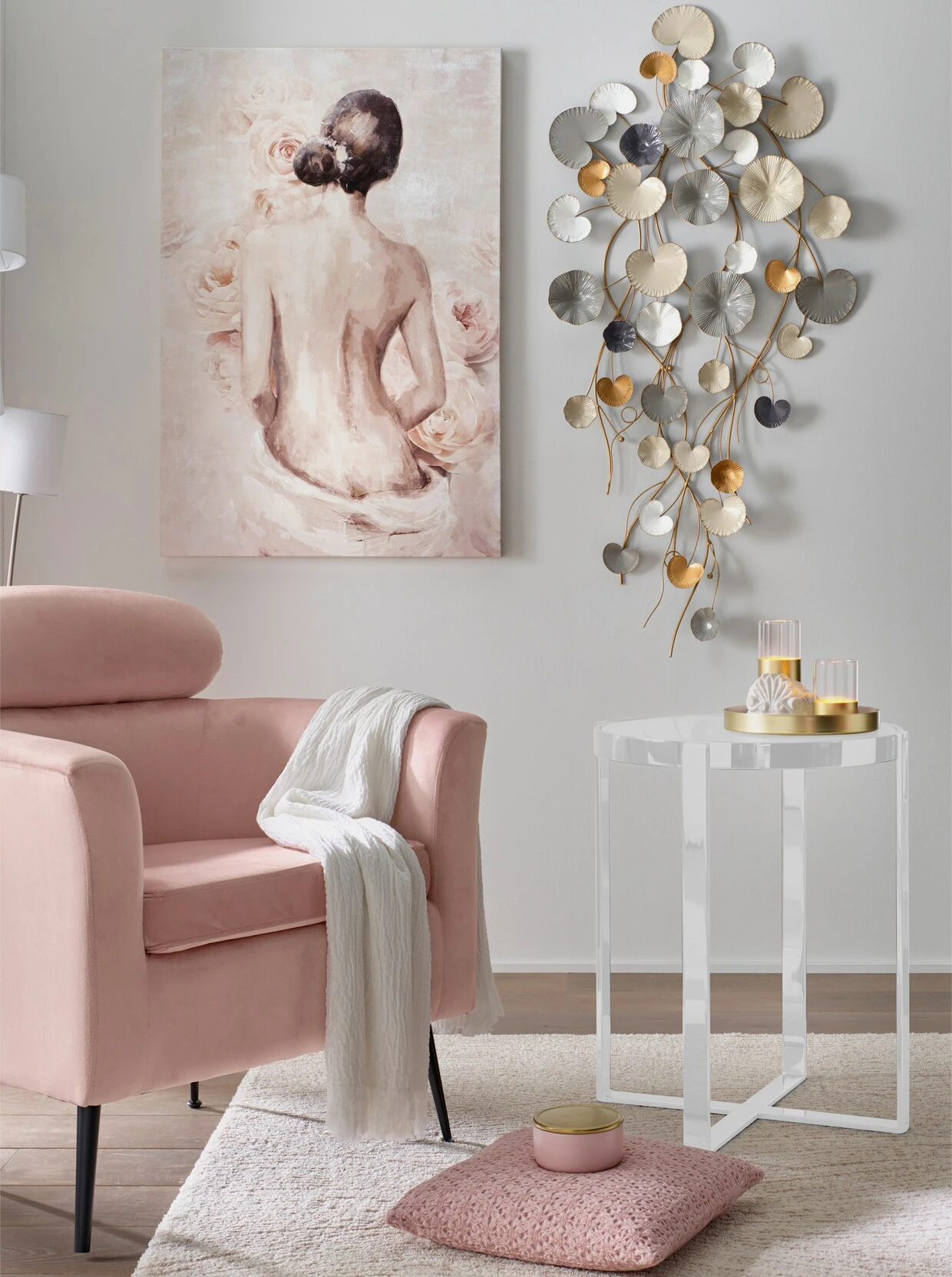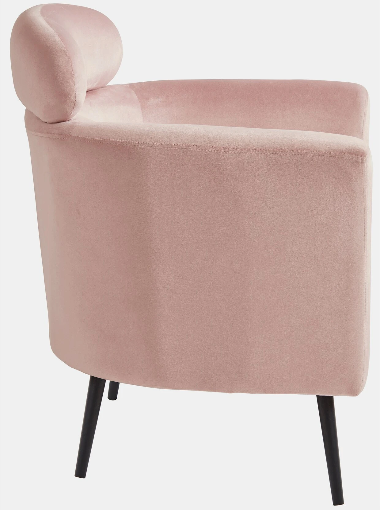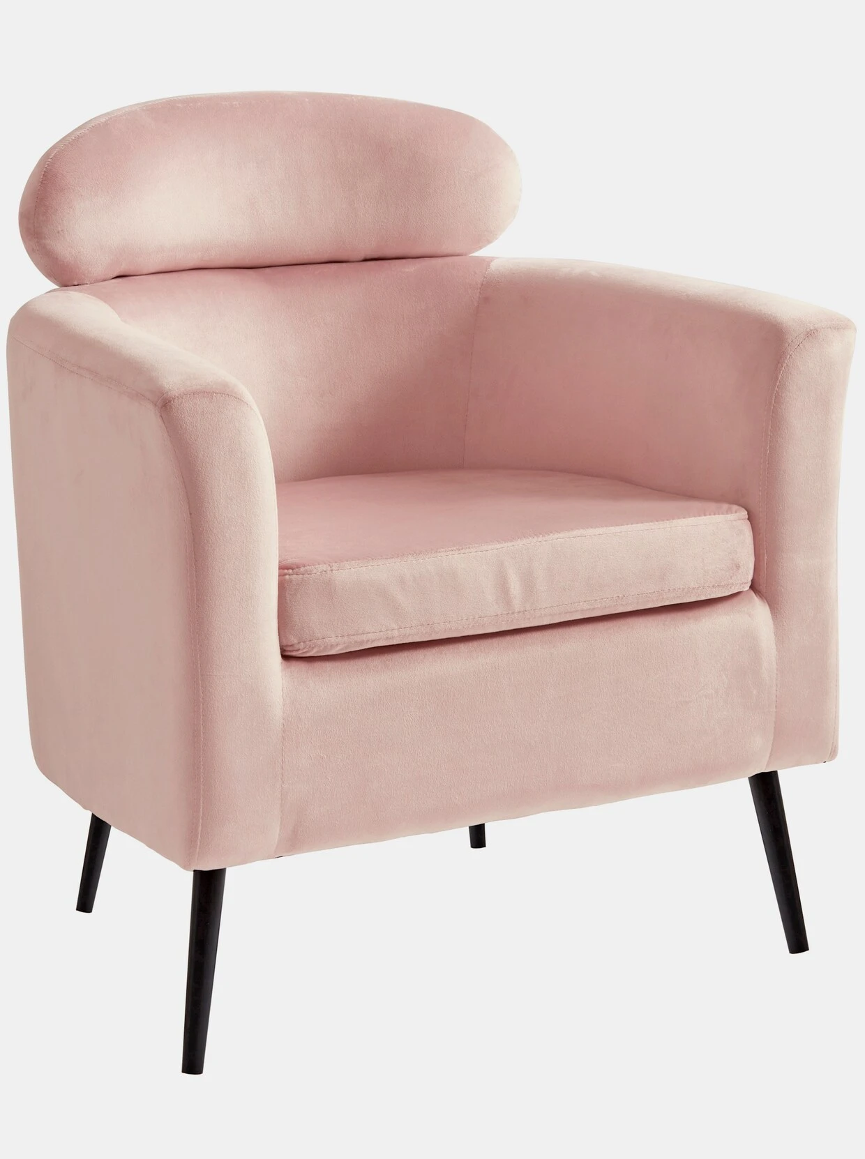 Sessel Im Retro-Stil. Gestell teils aus Gummibaumholz, teils aus Sperrholz. Bezug in Samtoptik. Füße aus Metall, schwarz lackiert. Sitz-H/B/T ca. 47/51/50 cm. Teilmontage.