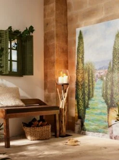 Spiegelfenster Aus massivem Pinien- und Pappelholz und MDF-Holzfaserplatte, naturbelassen oder weiß lackiert, gewischt und antikisiert. Spiegelfläche mit Sprossen. Fensterläden zuklappbar. Handgearbeitet, leichte Abweichungen möglich.
