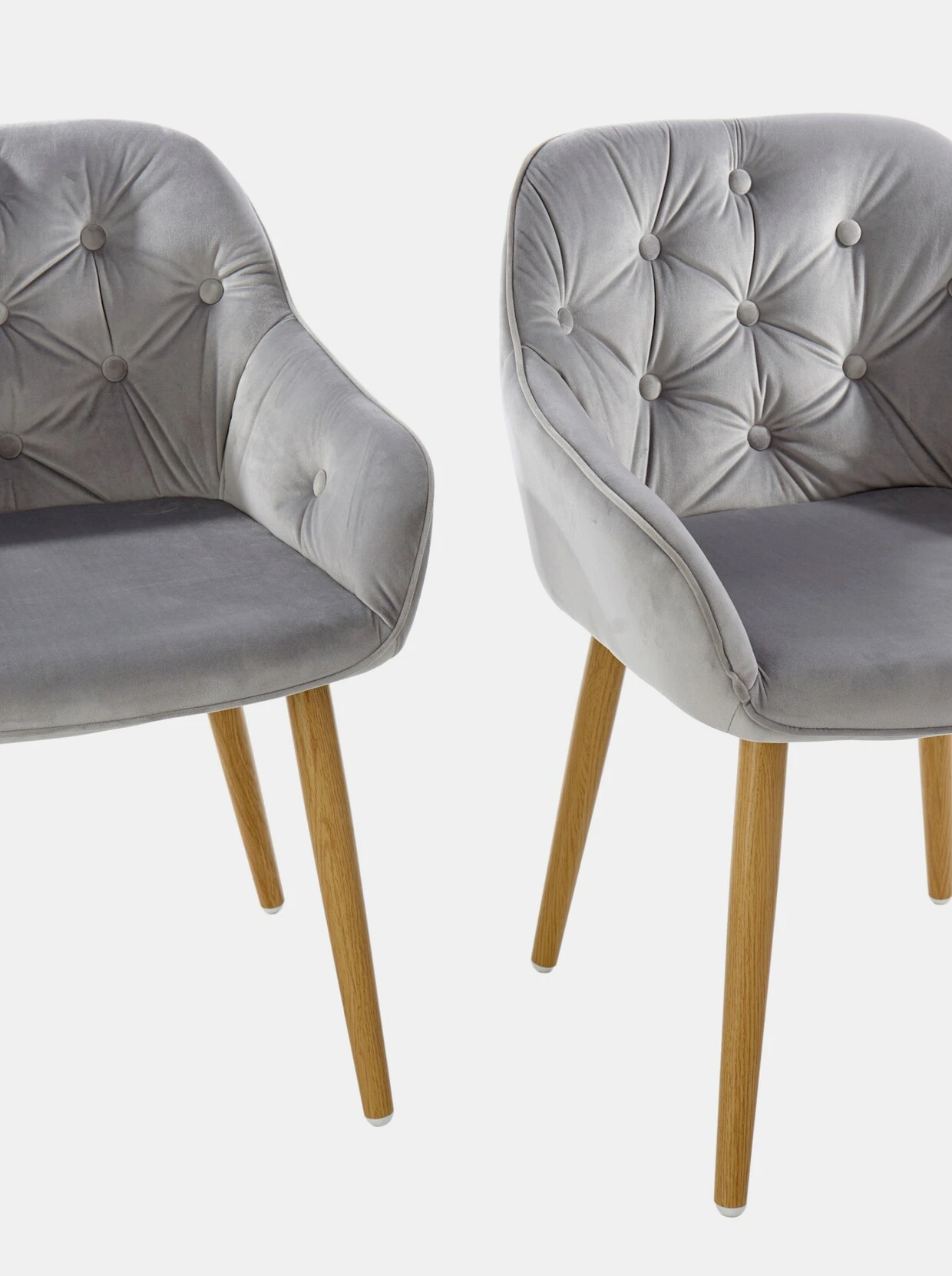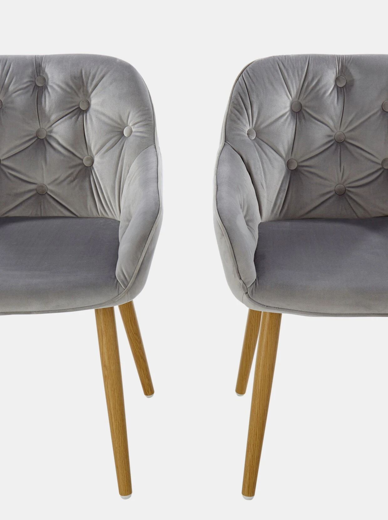 Stuhl Im modernen Design. Füße aus Metall, naturfarben beschichtet in Holzoptik. Hochwertiger Bezug in Samtoptik. Fester Schaumstoffkern.