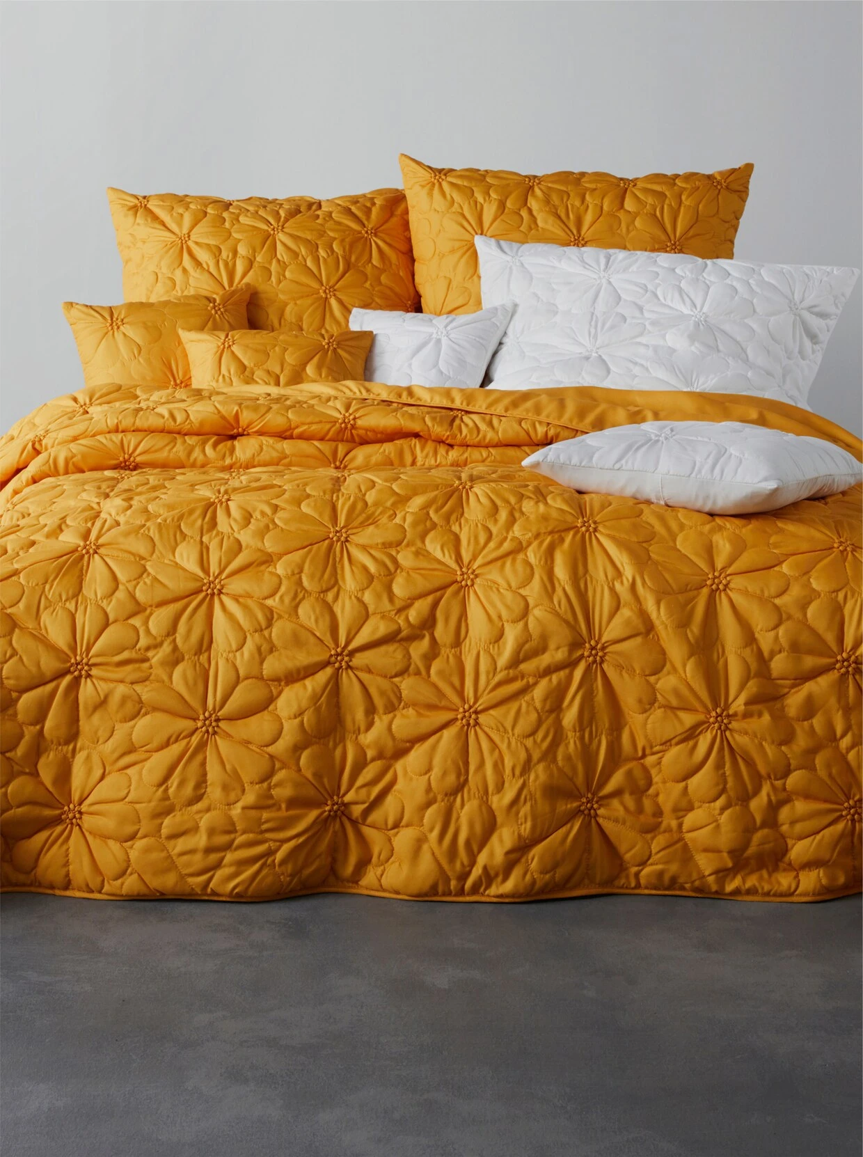 Tagesdecke 3-D-Effekt durch aufwendige Steppung. Kissenhüllen mit Reißverschluss. Maßinfos im Internet.