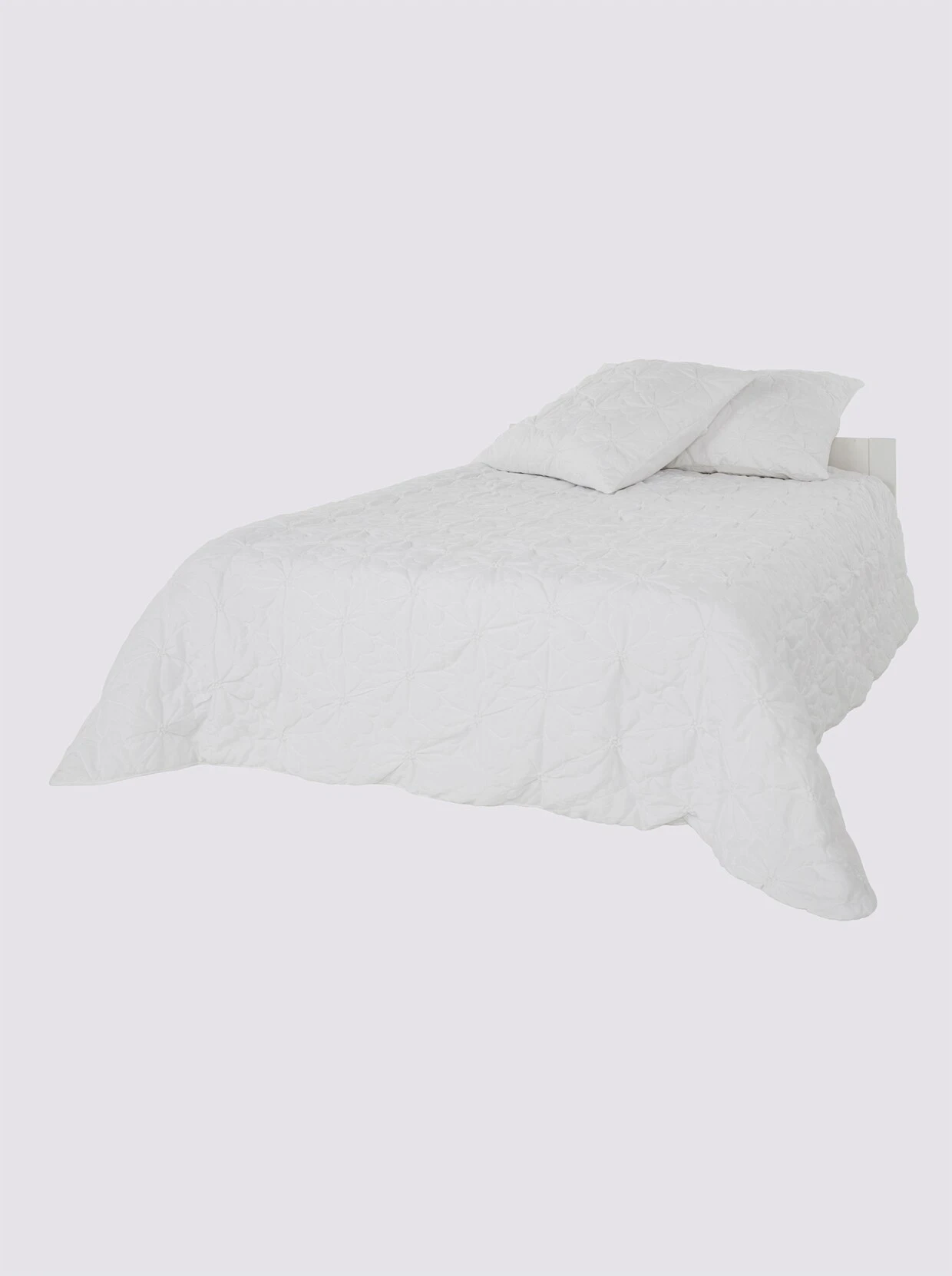 Tagesdecke 3-D-Effekt durch aufwendige Steppung. Kissenhüllen mit Reißverschluss. Maßinfos im Internet.