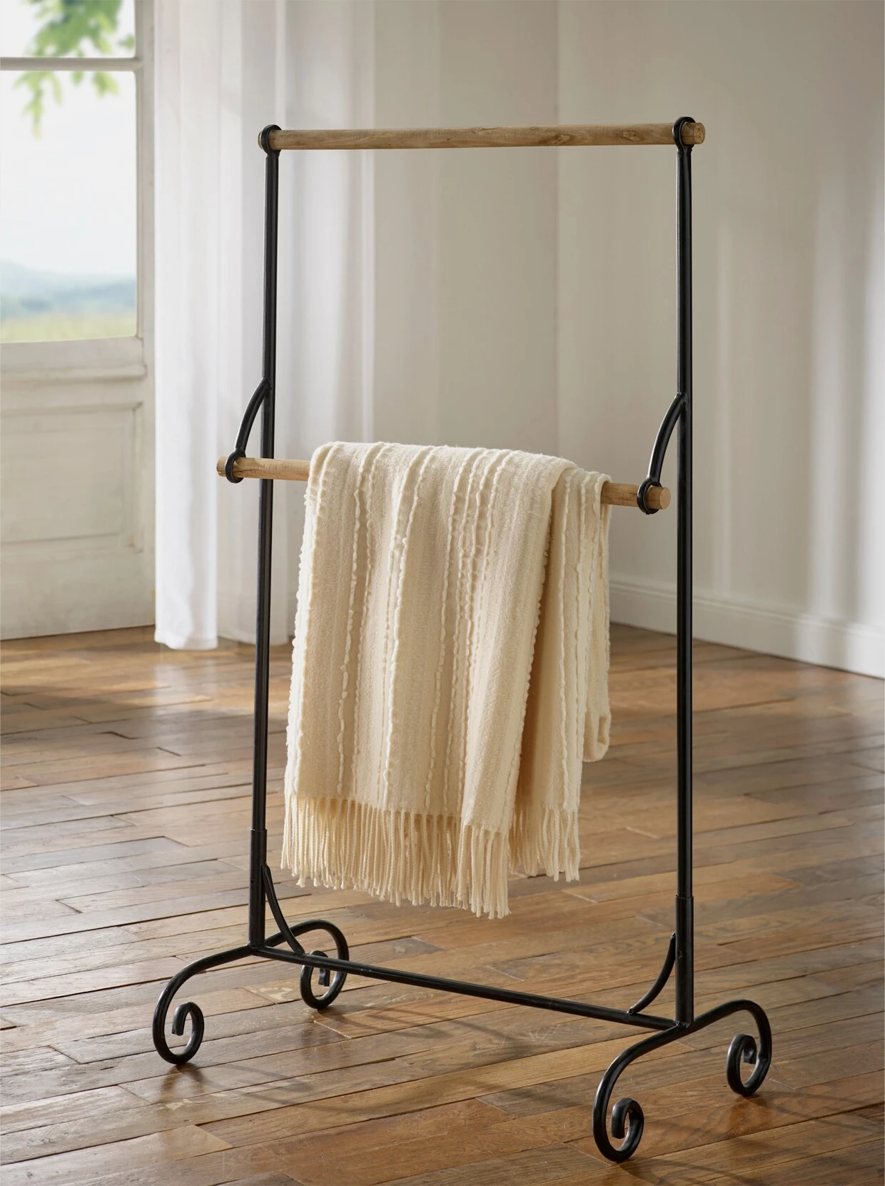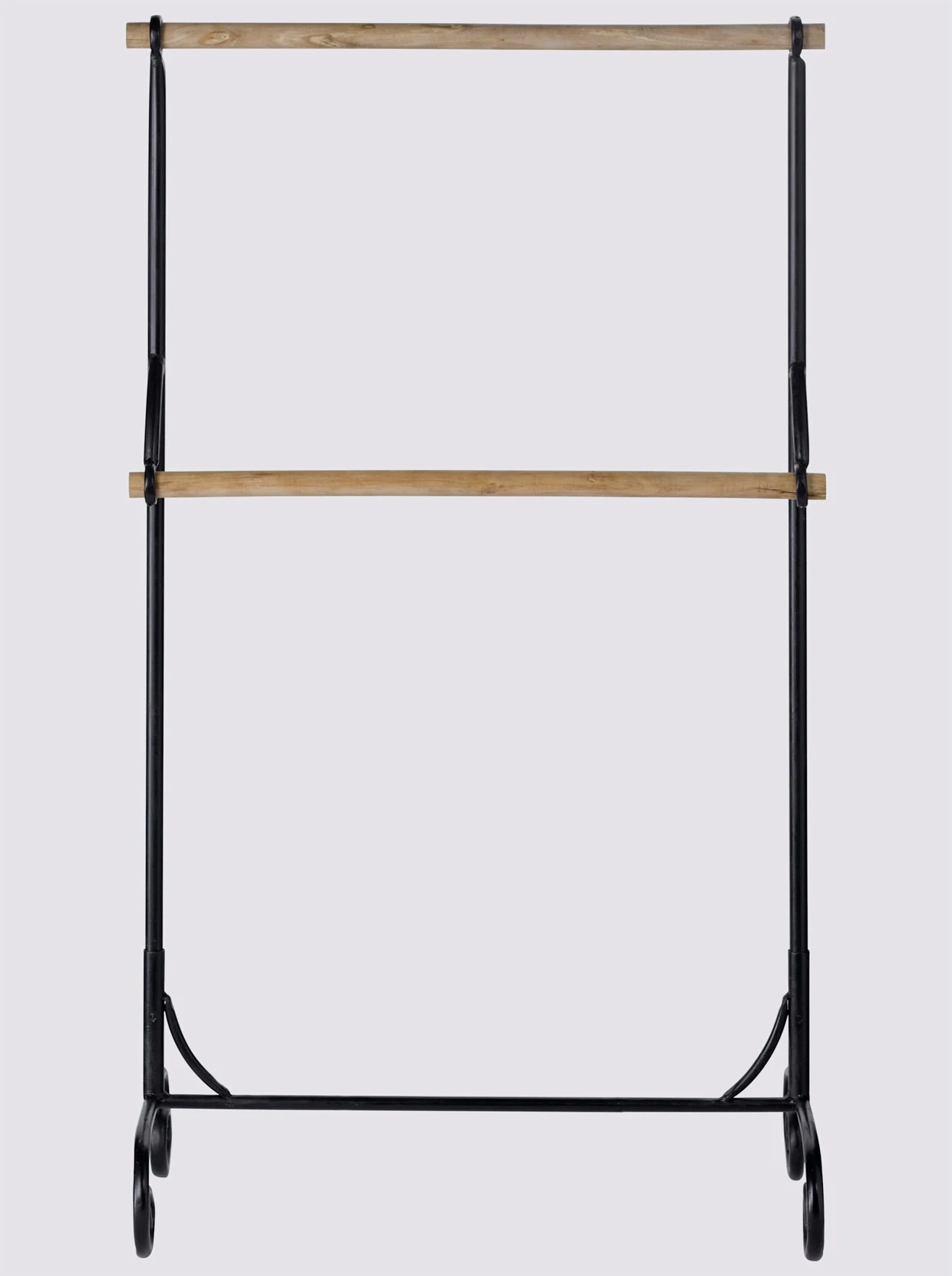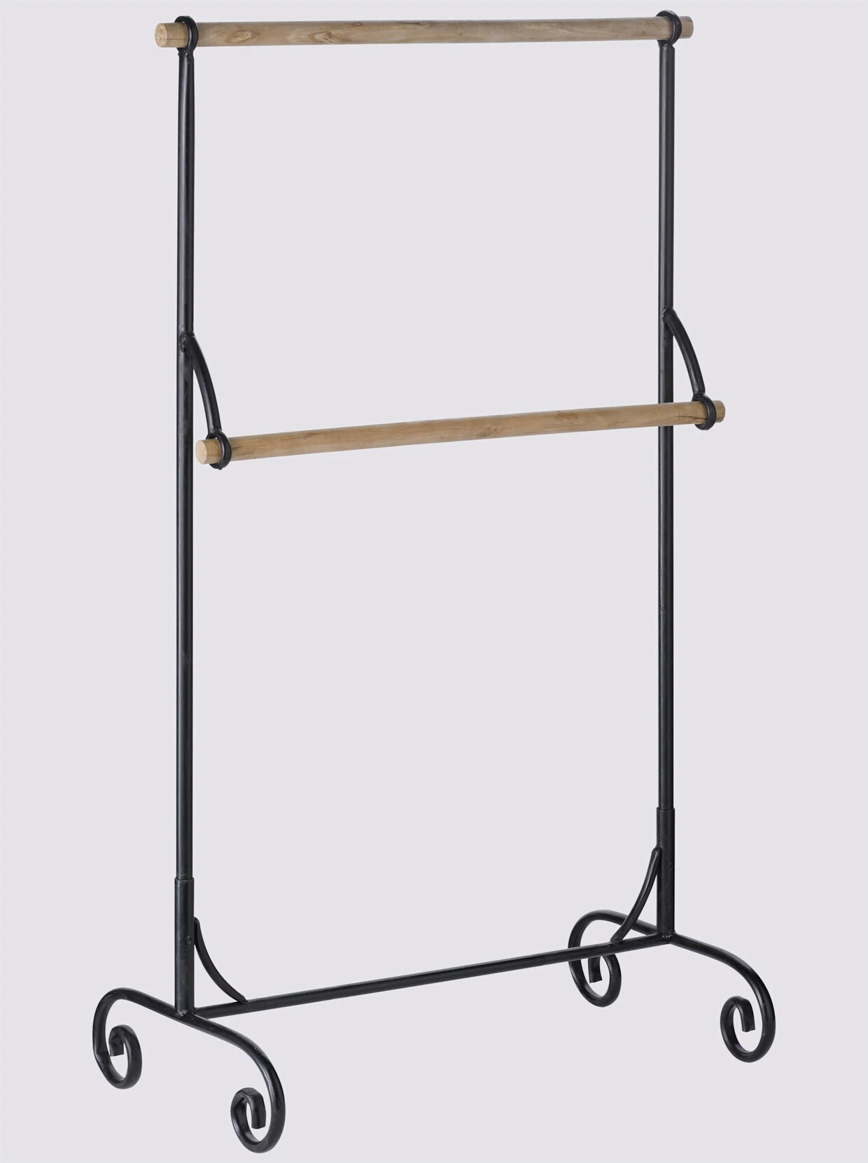 Tagesdeckenständer Gestell aus Metall, schwarz pulverbeschichtet. Stangen aus Holz. Teilmontage.