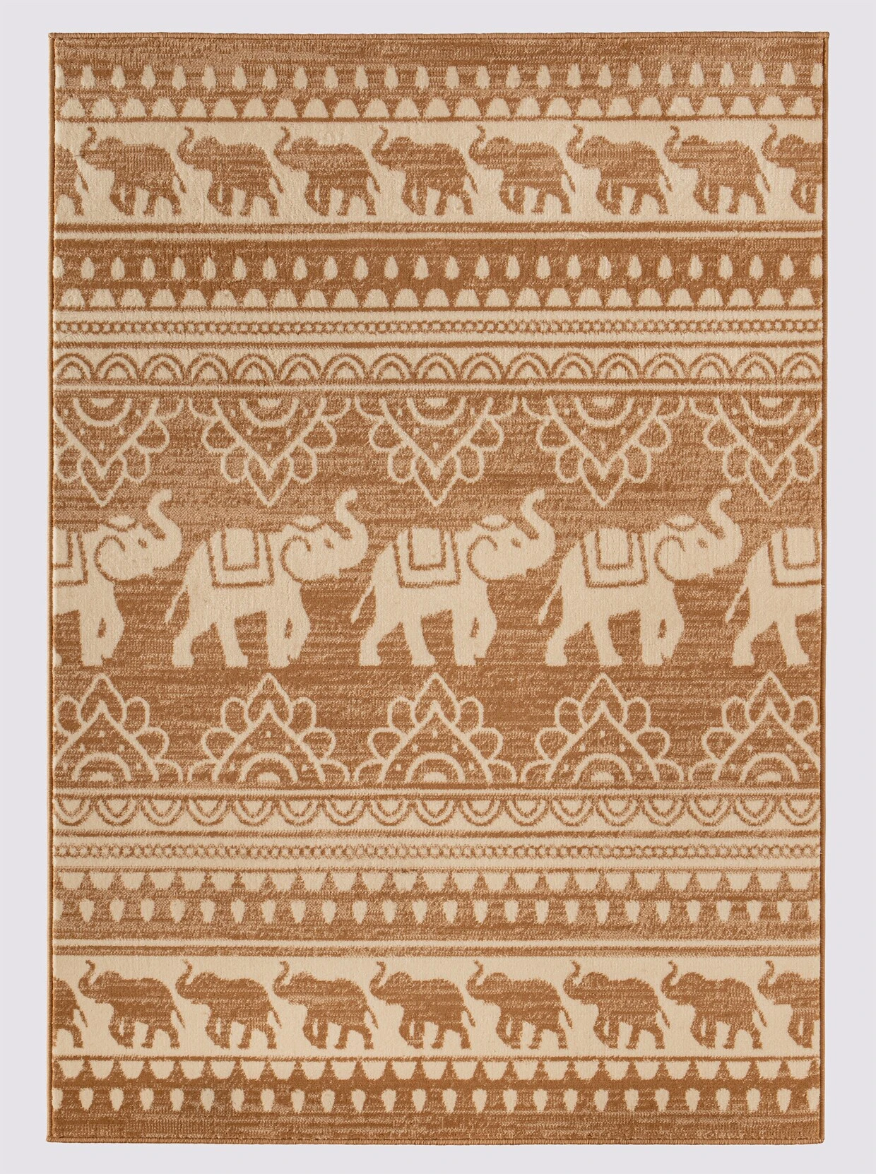 Teppich Mit aufwendigem Ornamenten- und Elefantenmotiv. Gekettelt. Äußerst strapazierfähig, pflegeleicht und langlebig.