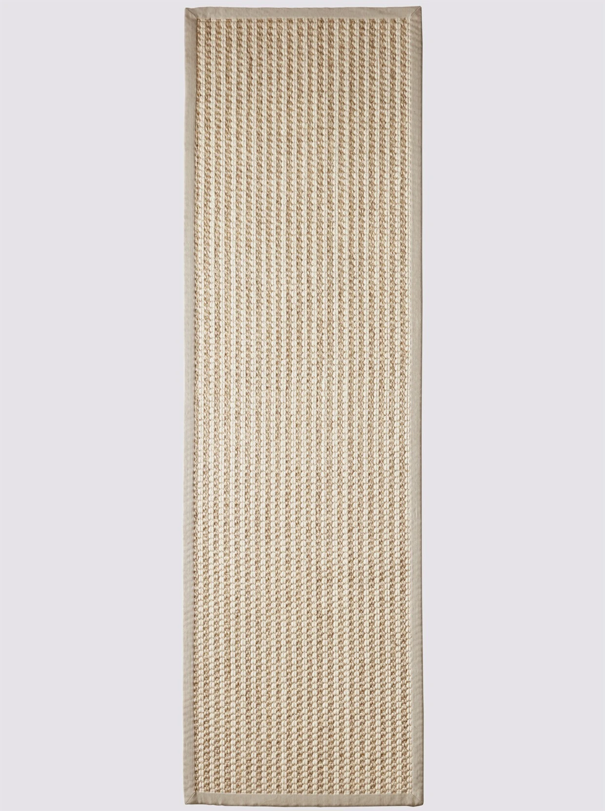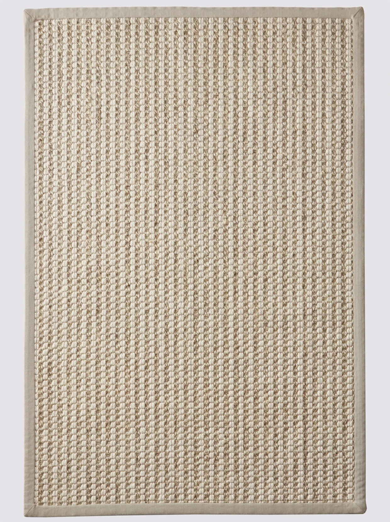 Teppich Natur pur. Sisal/Wollmischung mit Baumwollbordüre. Rückseite mit Latex rutschhemmend beschichtet.