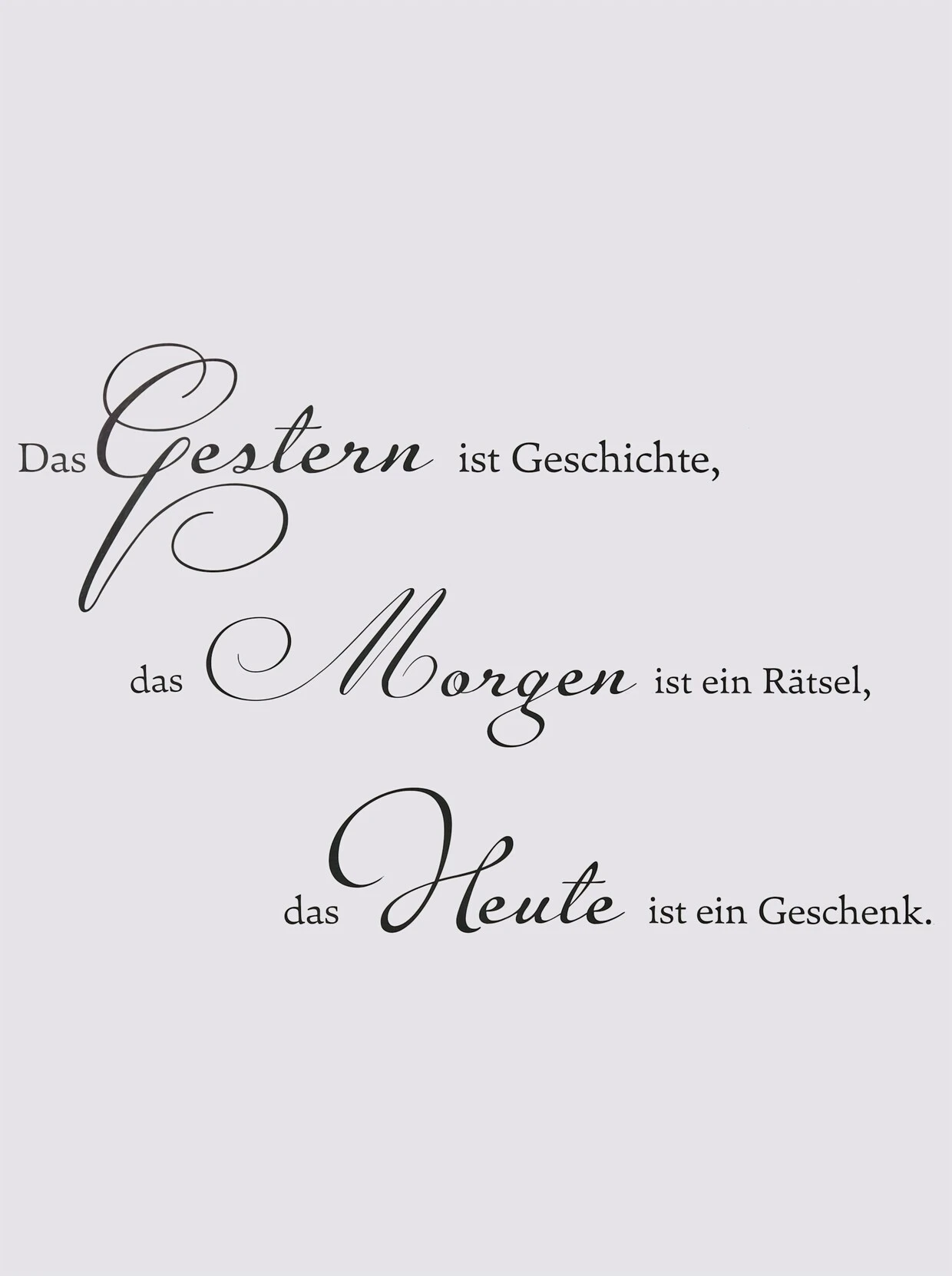 Walltattoo Spezialfolie aus Vinyl. Buchstaben auf Transferfolie. Folie abziehen – einfach ankleben, fertig. Individuell zuschneidbar und anbringbar. Hält auf Raufaser, Glattputz, Rauputz, Glas, Holz, Metall und allen glatten, fett freien Materialien.