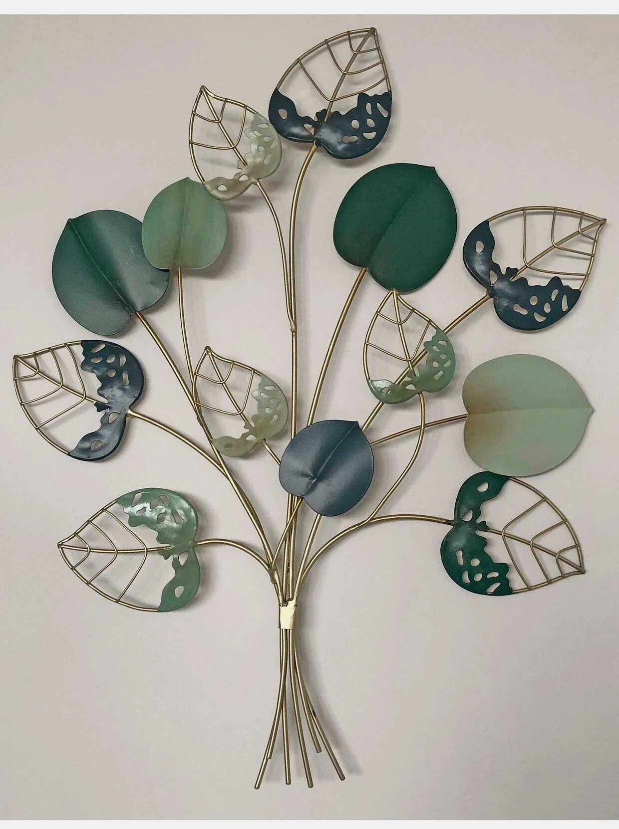 Wanddeko Blätter. Moderner Eyecatcher aus Metall. Aufwendig mehrfarbig lackiert.