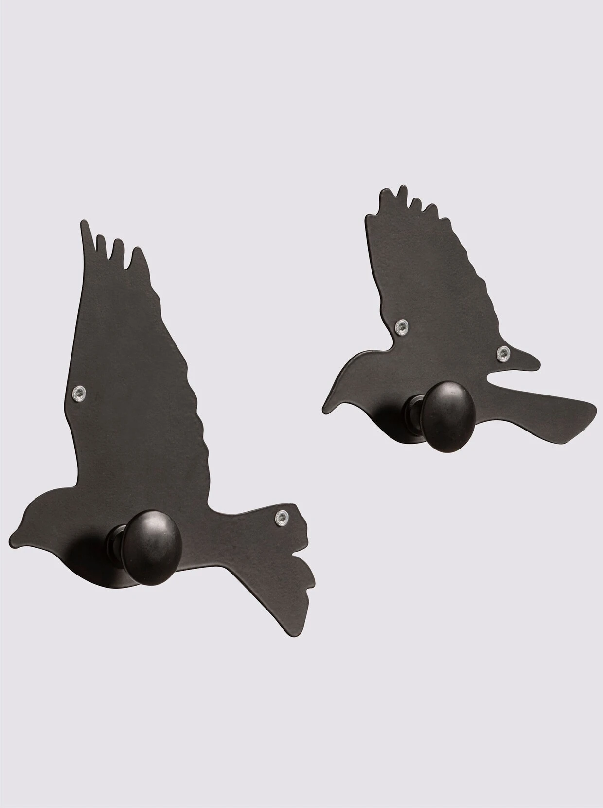 Wandhaken 2er-Set. Bestehend aus zwei einzelnen Vögeln mit jeweils einem Haken. Aus Metall, pulverbeschichtet. Dekorativ und funktional in einem.