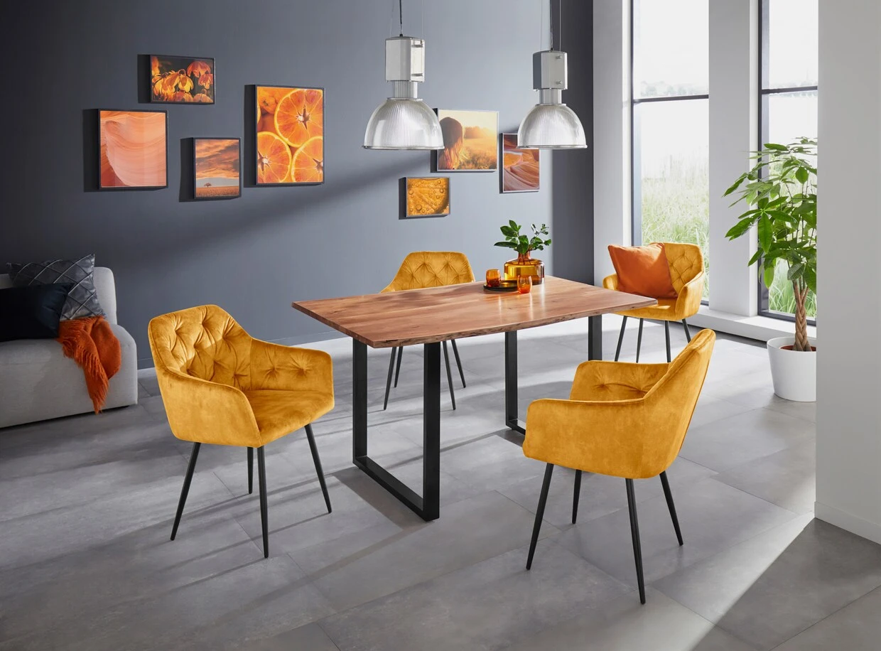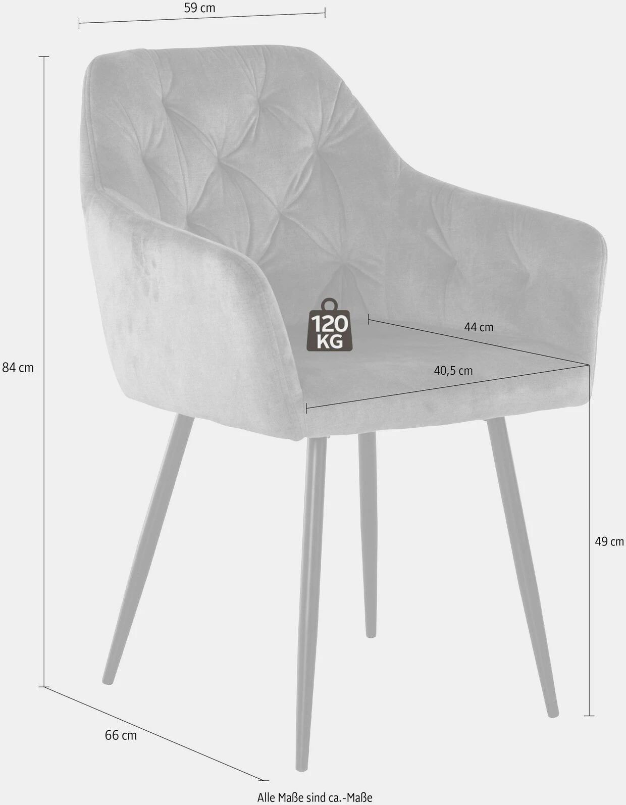 Vierfußgestell Rundrohr konisch Pulverbeschichtung schwarz, Sitzschale gepolstert, Bezug Webstoff Raven in Bouclé Optik, Belastbarkeit max: 120 kg, B 55 x T 61 x H 81 cm
