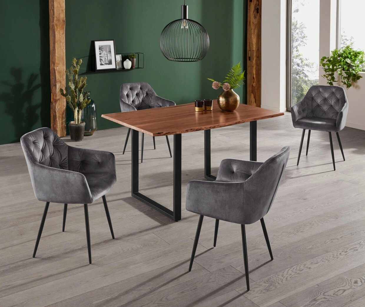 Vierfußgestell Rundrohr konisch Pulverbeschichtung schwarz, Sitzschale gepolstert, Bezug Webstoff Raven in Bouclé Optik, Belastbarkeit max: 120 kg, B 55 x T 61 x H 81 cm