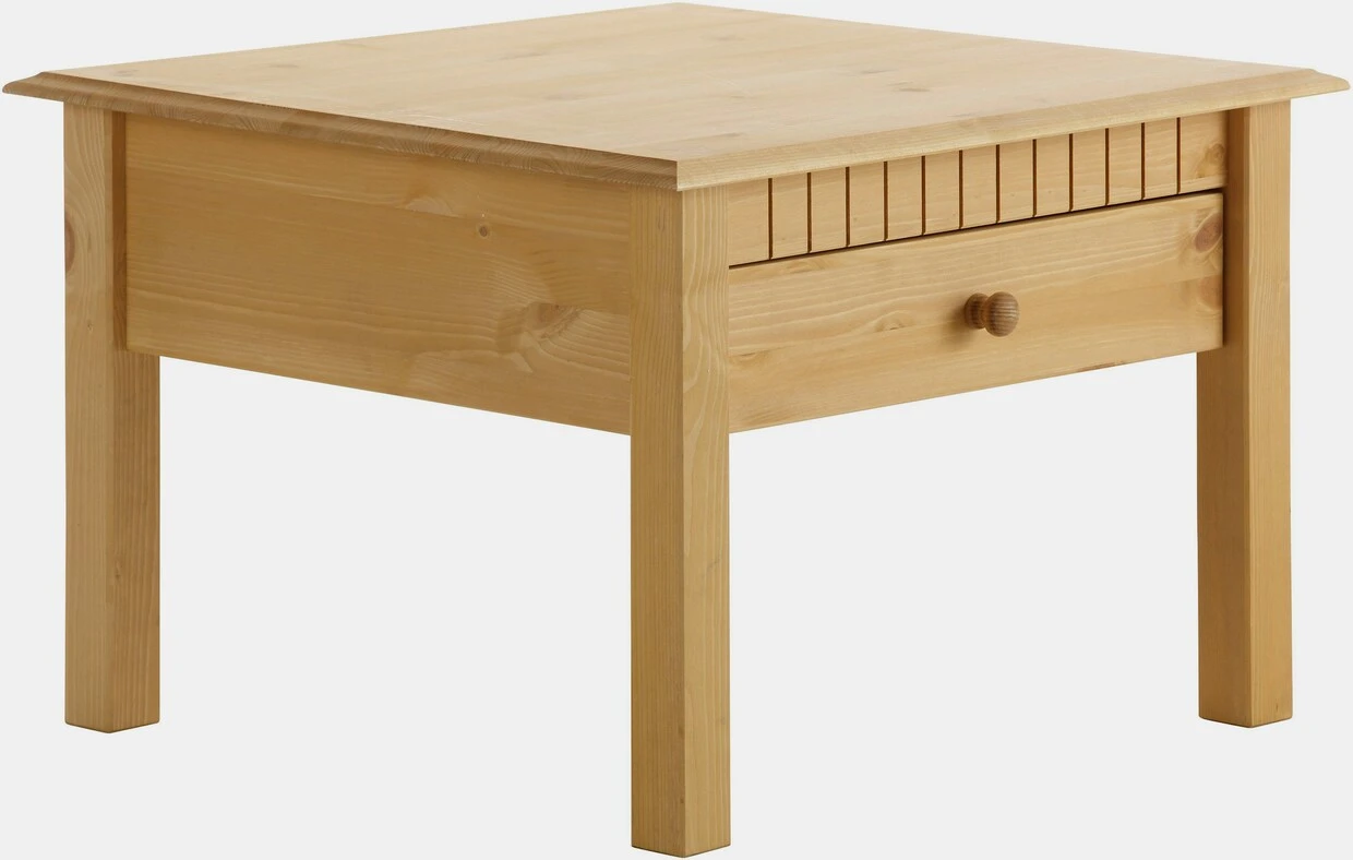 Couchtisch mit Schubkasten im Landhausstil! Aus FSC®-zertifizierter massiver Kiefer. Wahlweise gelaugt/geölt, dunkelbraun lackiert, kirschfarbig oder weiß lasiert (Äste sind sichtbar). Alle Maße sind ca.-maße. Selbstmontage mit Aufbauanleitung.