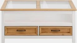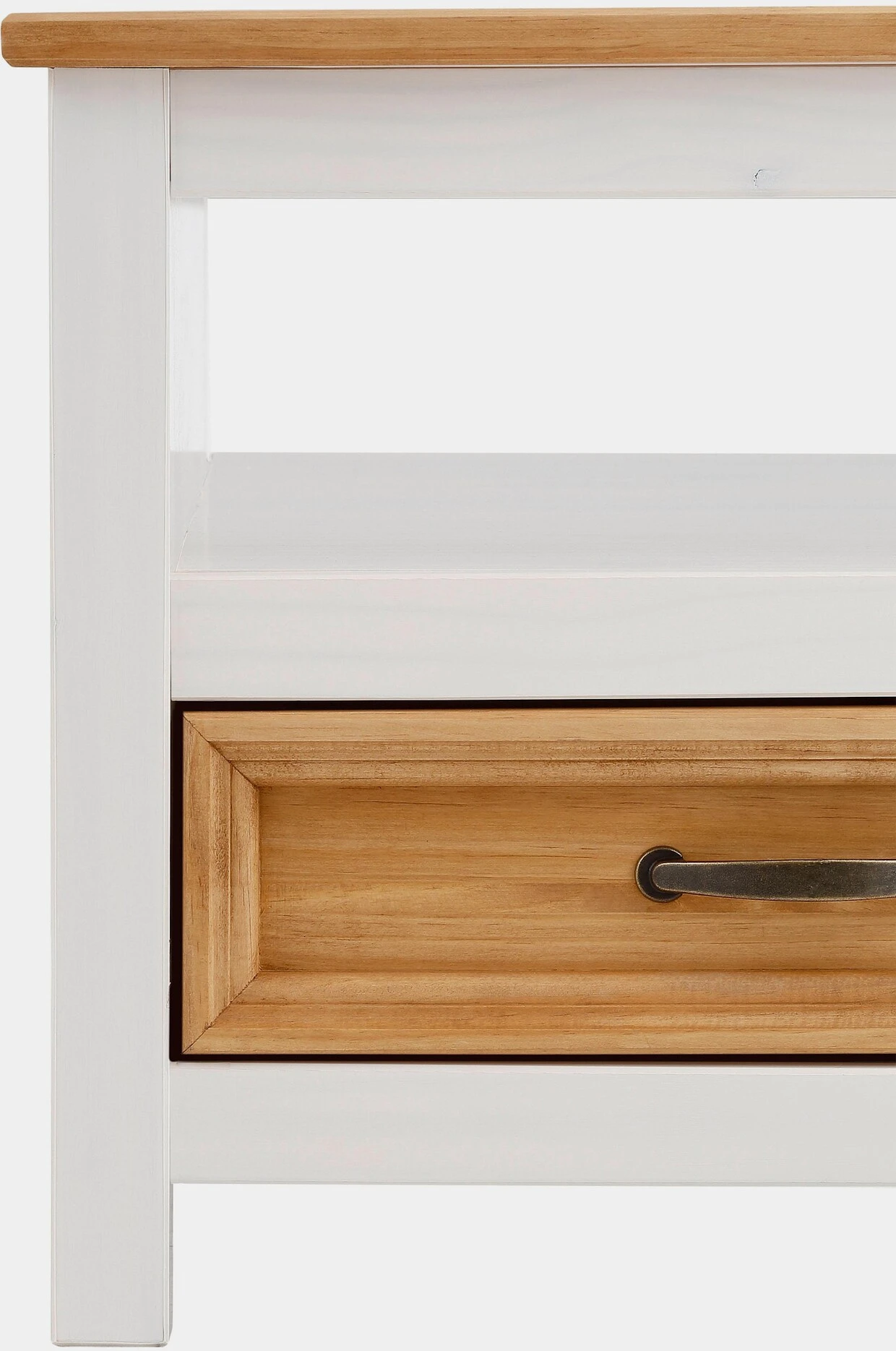 Gemütlicher Landhausstil für das Wohnzimmer: Mit dem harmonischen und behaglichen Design passt der Home affaire Couchtisch vorzüglich in das Wohnzimmer und erweist sich dort als Bereicherung. Die praktischen zwei Schubladen bieten ausreichend Platz für alles, was stets griffbereit sein sollte. Außdem gibt es auch ein offenes Fach und Glaseinsätze (Sicherheitsglas) in der Tischplatte. Alle Maße sind ca.-Maße. Selbstmontage mit Aufbauanleitung.