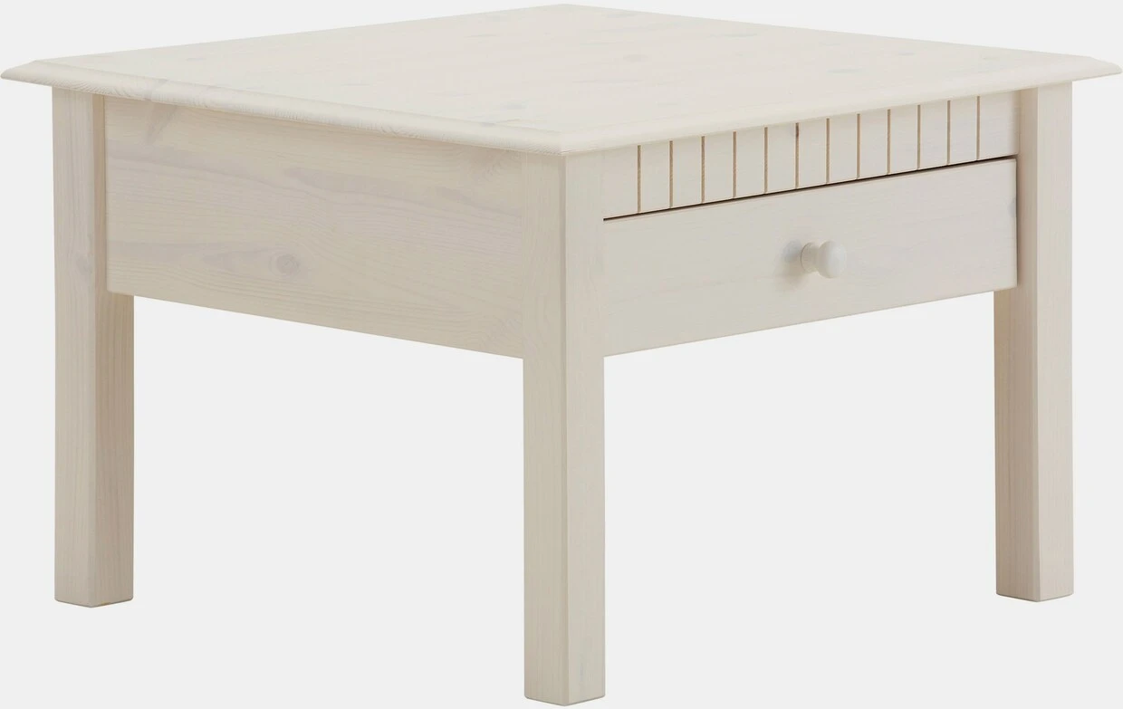 Couchtisch mit Schubkasten im Landhausstil! Aus FSC®-zertifizierter massiver Kiefer. Wahlweise gelaugt/geölt, dunkelbraun lackiert, kirschfarbig oder weiß lasiert (Äste sind sichtbar). Alle Maße sind ca.-maße. Selbstmontage mit Aufbauanleitung.