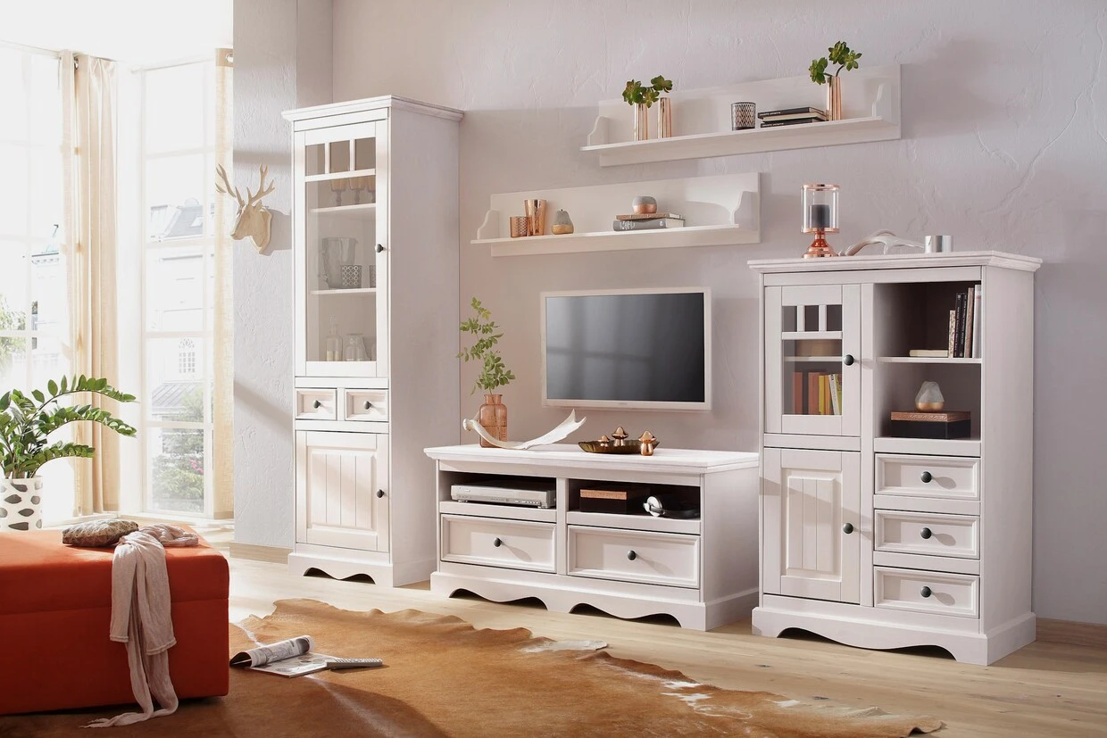 FSC®-zertifiziertes massives Kiefernholz, 1 Mit Glastüren, Viel Stauraum, Im Landhaus-Stil, Tolle Holzoptik