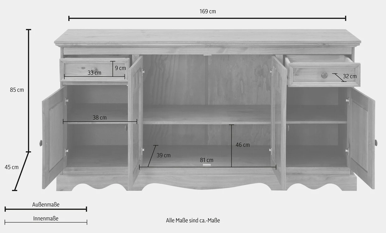| Größe wählen | B 169 x H 85 x T 45 cm |