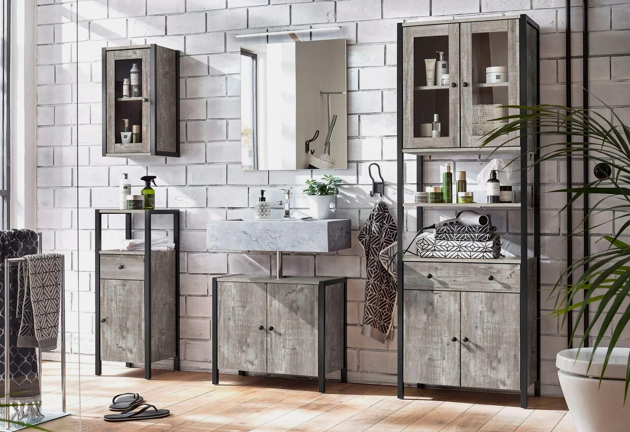 Maße (B/T/H): 33/35/90 cm, FSC®-zertifiziert, Metallgriffe, 1 Tür, Mit Rahmen in Metalloptik