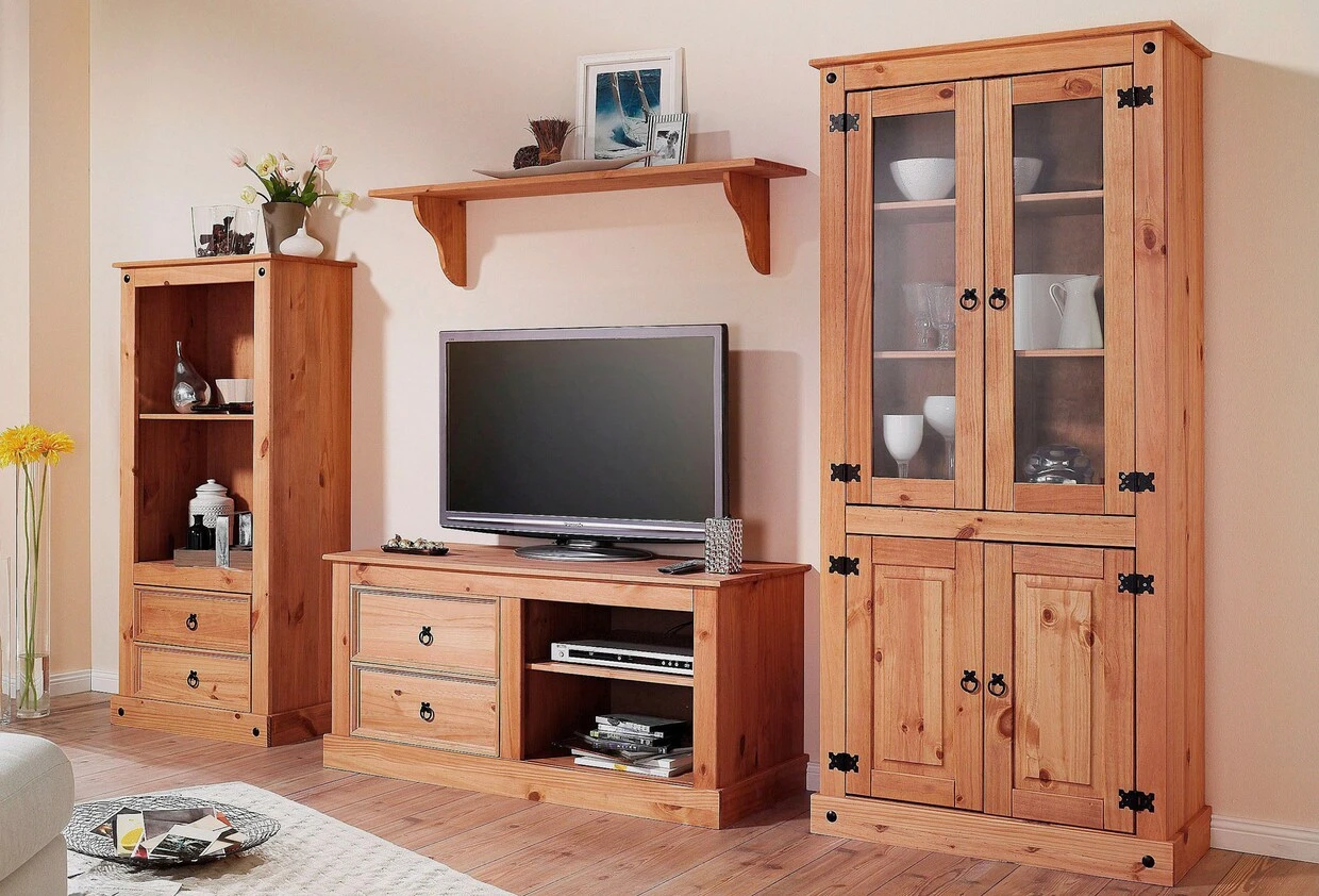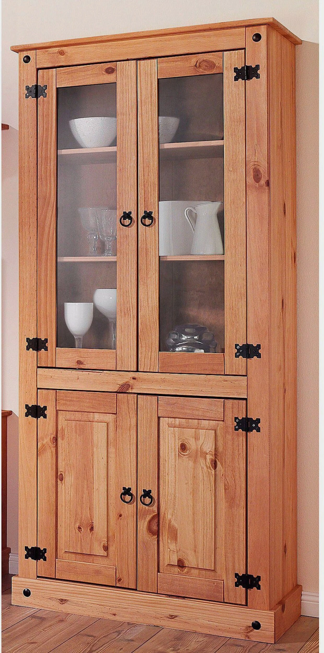 Nostalgische Vitrine, Wohnmöbel aus massiver Kiefer, FSC®-zertifiziert, Außenmaße (B/T/H): 81/38/177 cm, <b>24-Stunden-Lieferung möglich</b>