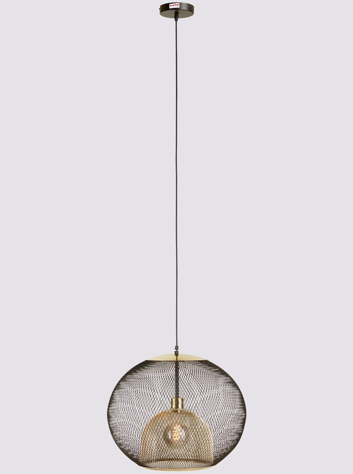 Pendelleuchte Aus Metall, schwarz pulverbeschichtet bzw. goldfarben lackiert. Schirmhöhe ca. 35 cm. LED-Fassung E27, max. 40 W. Ohne Leuchtmittel.