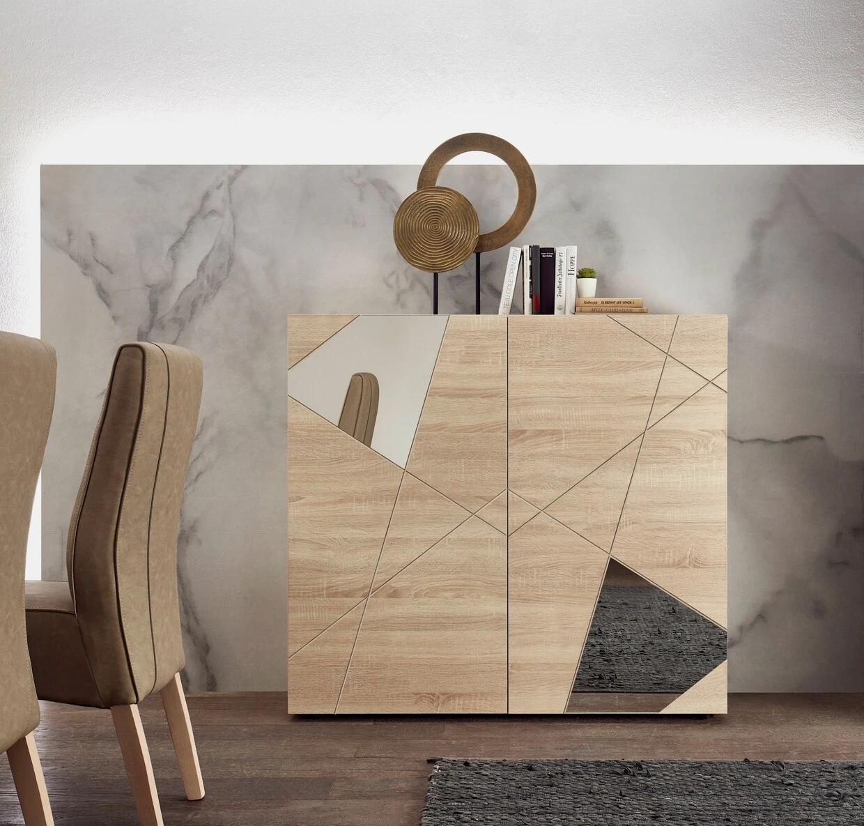 Maße (B/T/H): 121/42/111 cm, Front mit Siebdruck und Spiegel, 2 Türen, FSC®-zertifizierter Holzwerkstoff, Italian Design