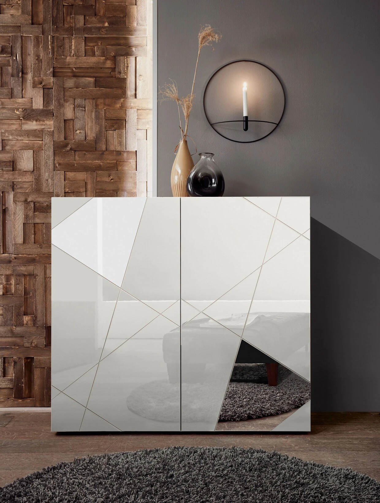 Maße (B/T/H): 121/42/111 cm, Front mit Siebdruck und Spiegel, 2 Türen, FSC®-zertifizierter Holzwerkstoff, Italian Design