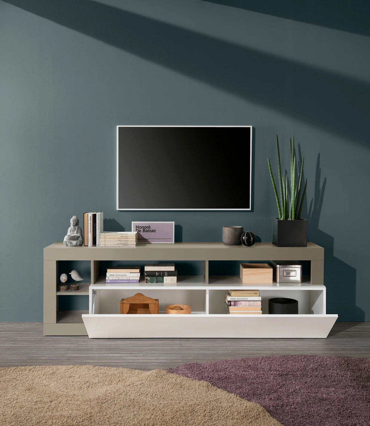 Maße (B/T/H): 184/35/58 cm, 1 Klappe und mit Aufsatz/Rahmen, Front weiß Hochglanz lackiert, FSC®-zertifizierter Holzwerkstoff, Italian Design