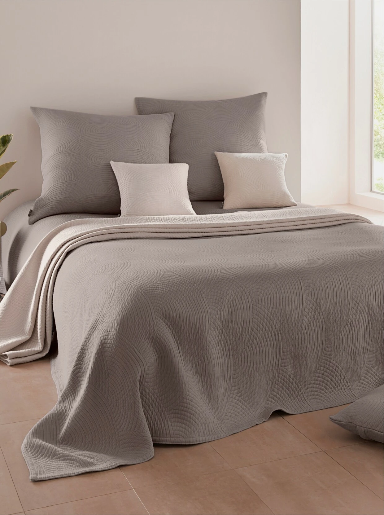 Tagesdecke Mit 3D-Struktur, diese wird durch die hochwertig verarbeitete Doppelwebung erzeugt. Gesäumt. Kissenhülle mit Reißverschluss. Maßinfos im Internet.