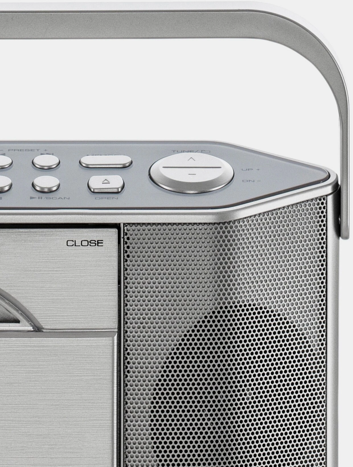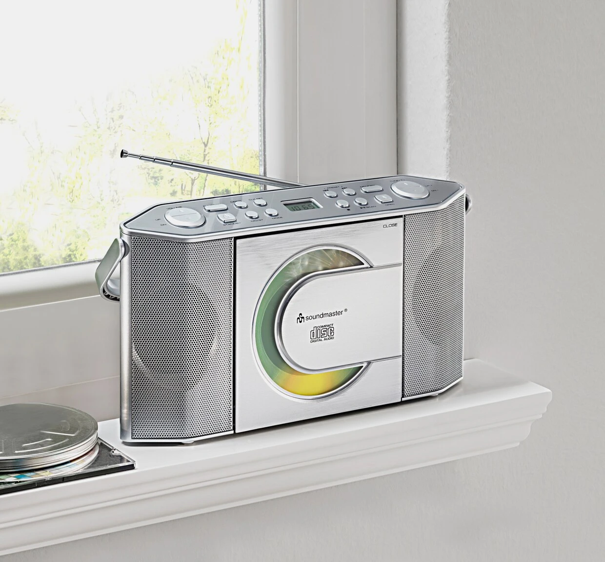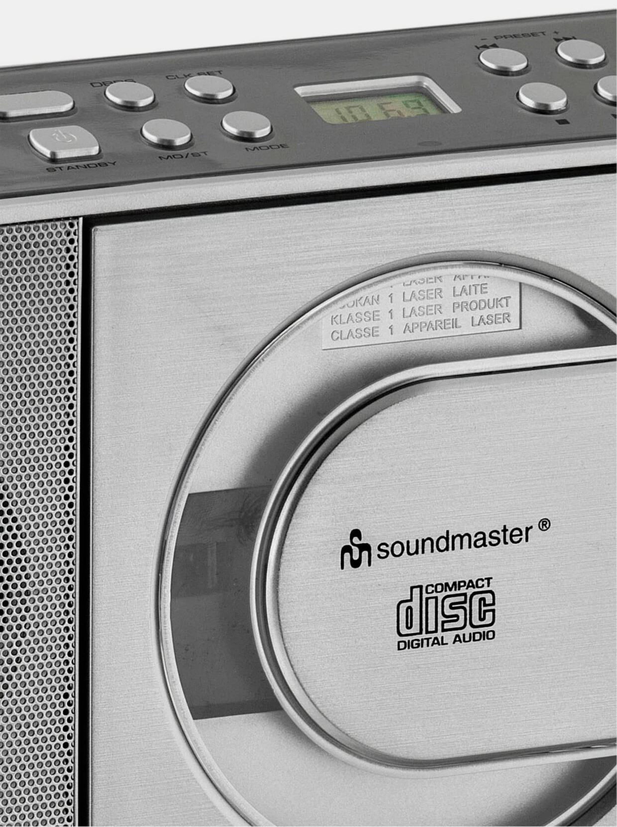 Radio-CD-Player Extra schmal, passt auch auf die Fensterbank. UKW-PLL-Stereo-Radio mit Festsenderspeicher und LCD-Display. Programmierbare Lautstärkeregelung. Hörbuchfunktion. Programmierbarer CD-Spieler, CD/CD-R/CD-RW/CD-MP3. Kopfhörer-Anschluss. Netzbetrieb AC 230 V/50 Hz oder Batteriebetrieb 6x UM2/C 1,5 V. Ohne Batterien.