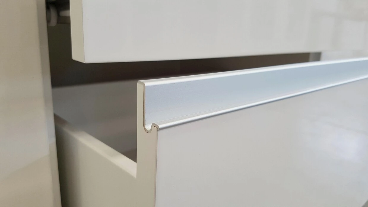 Nachtkommode Mit LED-Beleuchtung. Komplett weiß Hochglanz lackiert. Softgriffe, alufarben. Mit 3 Schubkästen, Innenmaße H/B/T je ca. 10,5/42//34 cm. Gesamt-H/B/T ca. 66/50/40 cm. Selbstmontage.