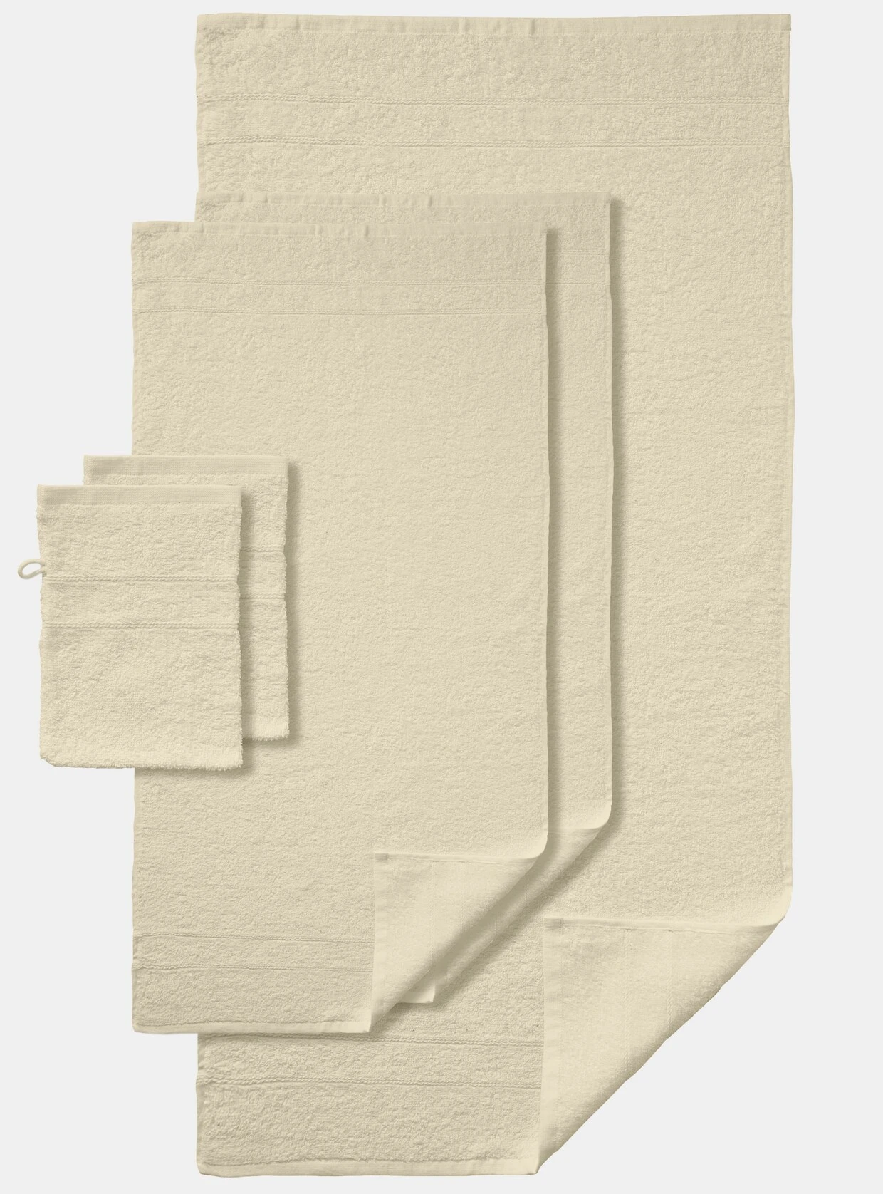 Handtücher Aus weichem Walkfrottier. Bestehend aus 1 Duschtuch, 2 Handtüchern und 2 Waschhandschuhen.