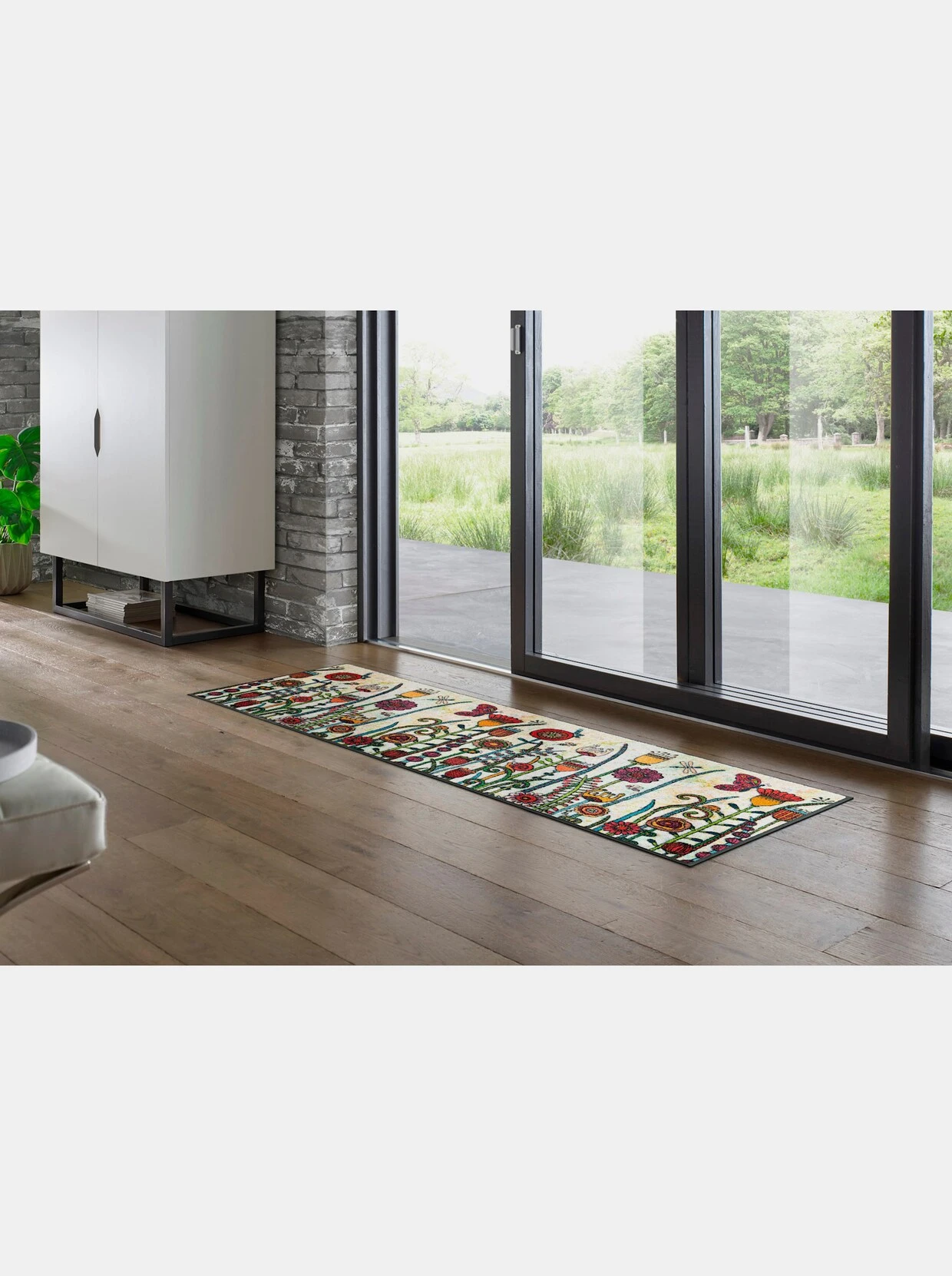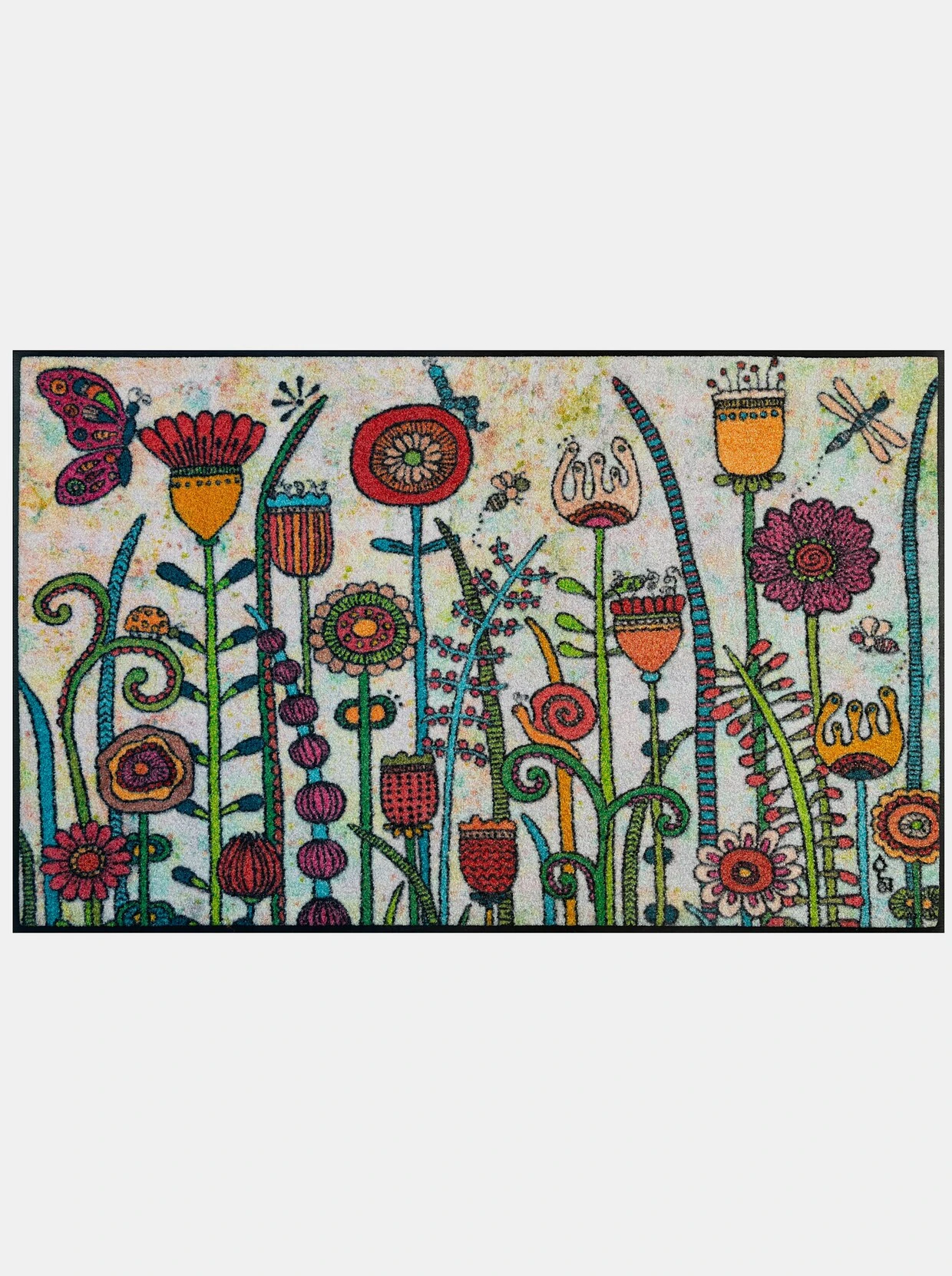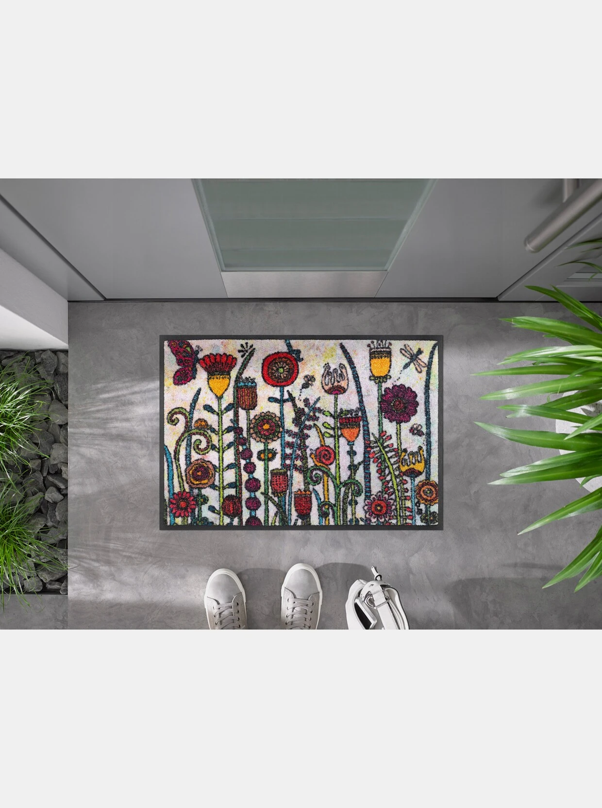 Fußmatte Mit dekorativem Blumenwiesen-Motiv. Äußerst strapazierfähig und pflegeleicht. Für den Innen- und überdachten Außenbereich. Rückseite rutschhemmend gummiert. PVC-frei. Für Fußbodenheizung geeignet, 5 Jahre Qualitätsgarantie.