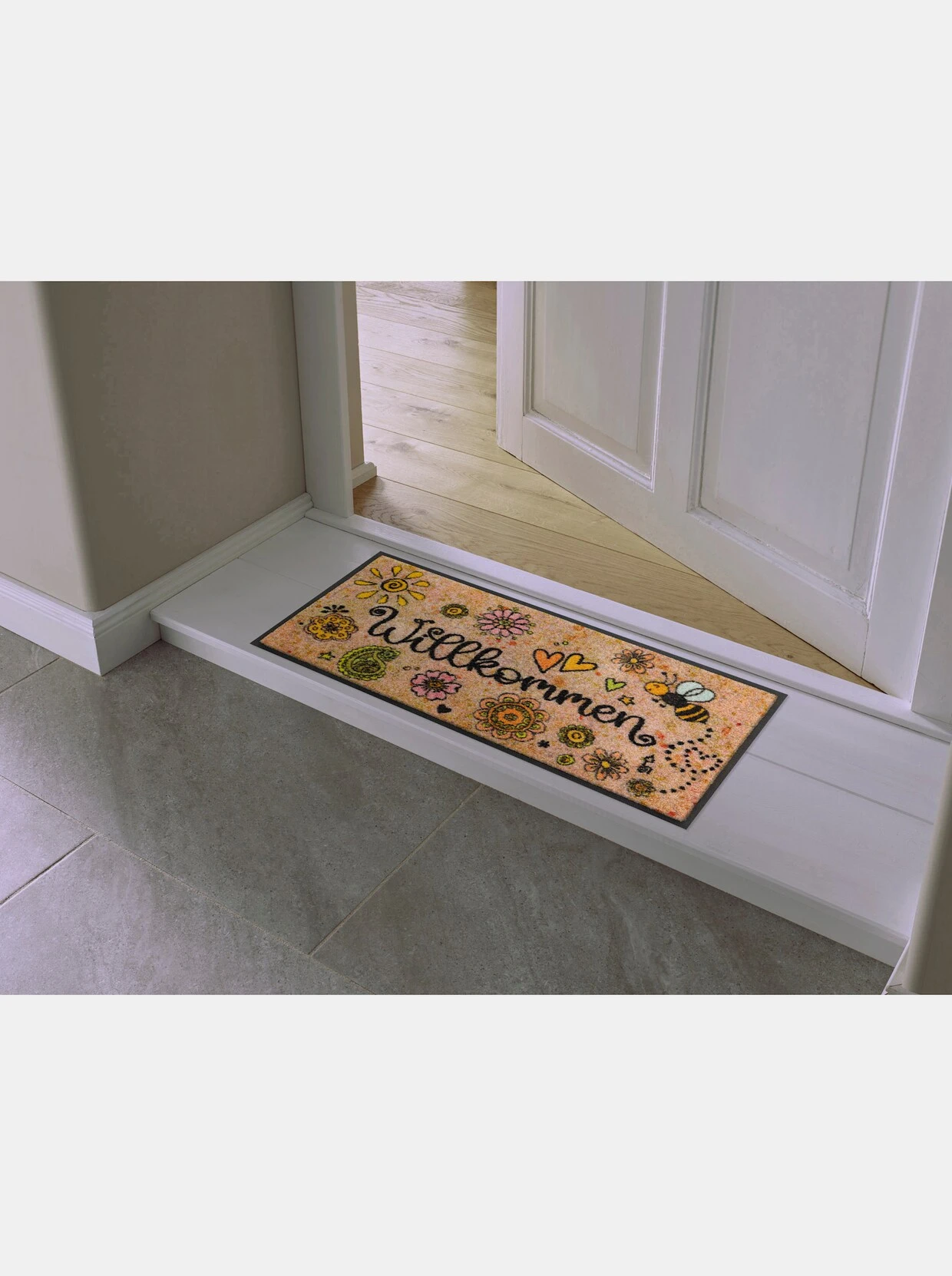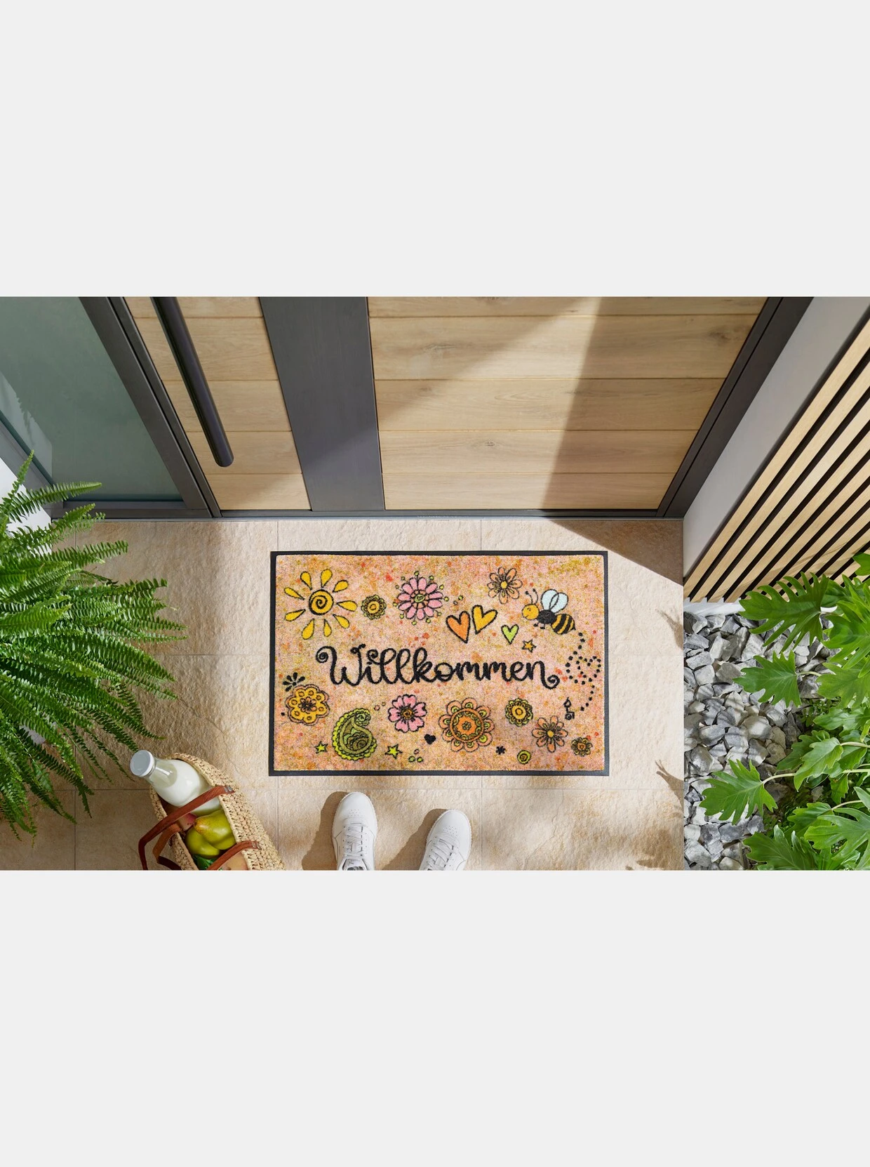 Fußmatte Mit WILLKOMMEN-Schriftzug. Äußerst strapazierfähig und pflegeleicht. Für den Innen- und überdachten Außenbereich. Rückseite rutschhemmend gummiert. PVC-frei. Für Fußbodenheizung geeignet, 5 Jahre Qualitätsgarantie.